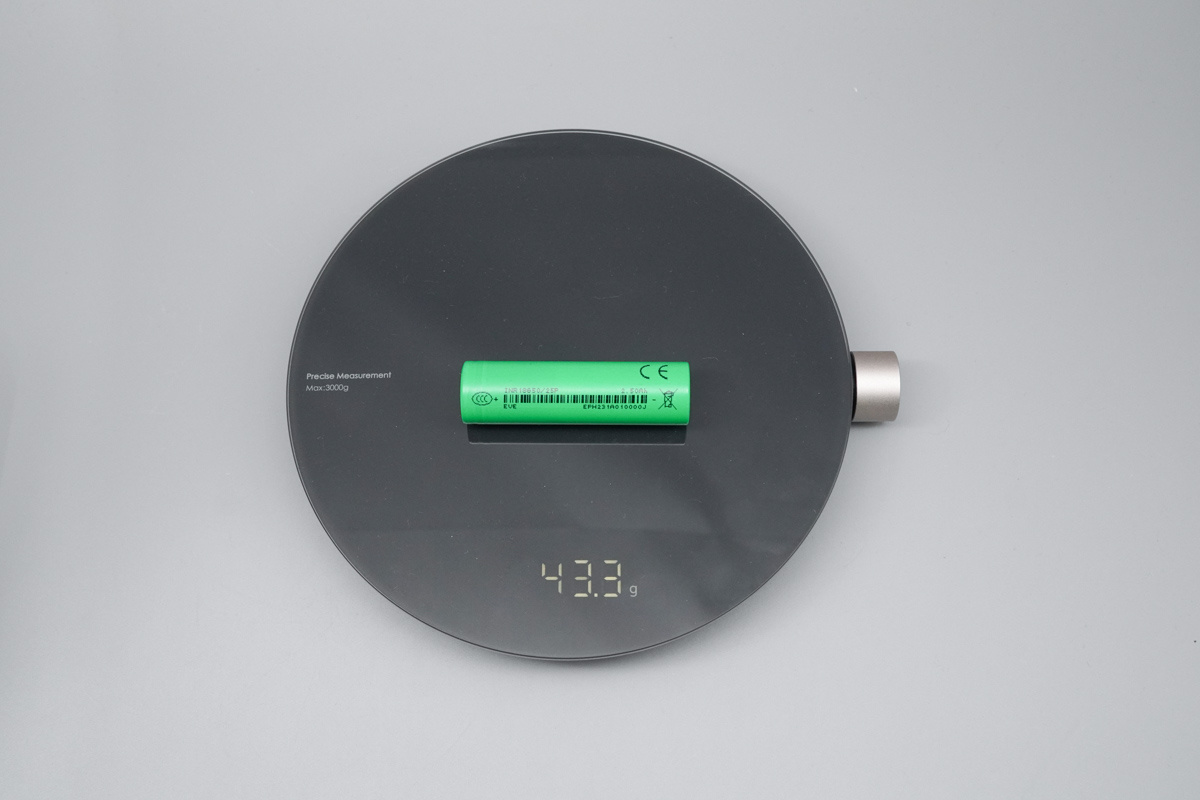 综合来看,亿纬锂能INR18650-25P电芯拥有“稳定与高效并存”的核心优势。外观上,绿色套膜搭配精细丝印,合金正负极设计兼顾耐用性与安全性,四泄气孔的配置进一步提升了使用安全性;尺寸重量贴合18650标准规格,43.3g的重量的设计,适配各类小型设备与电池组组装需求。