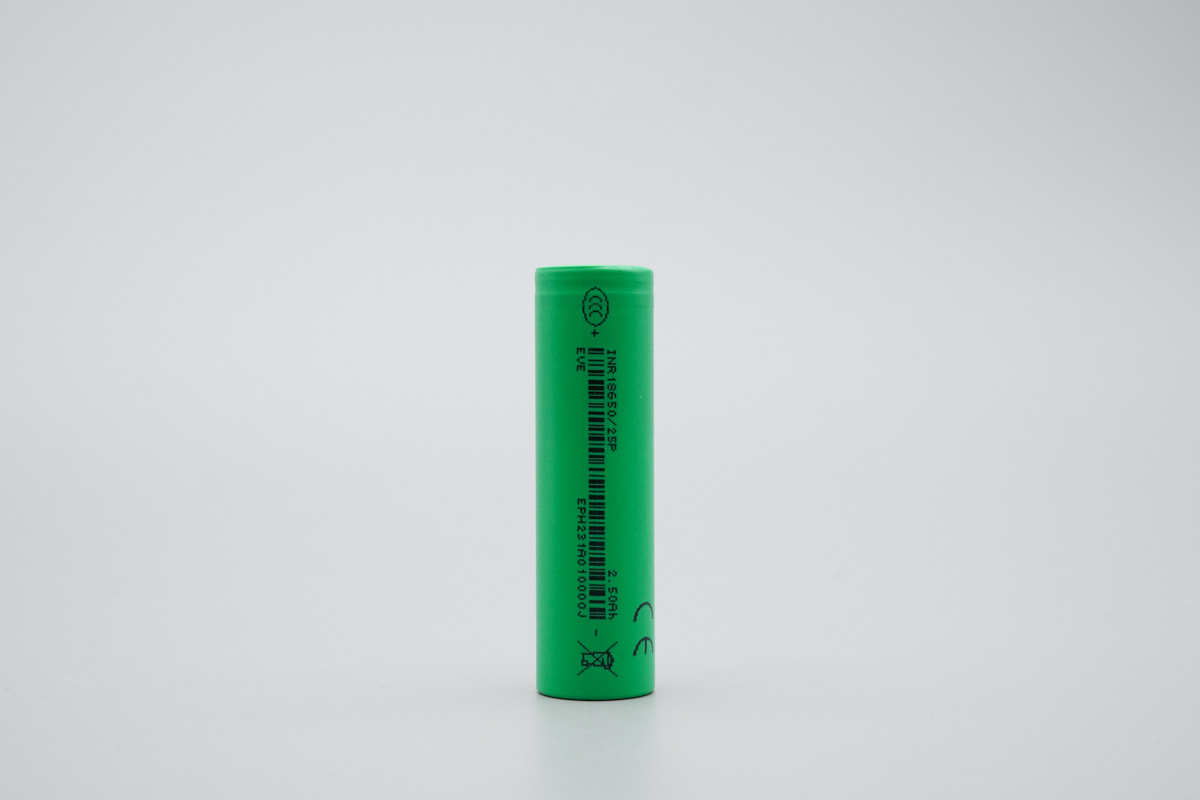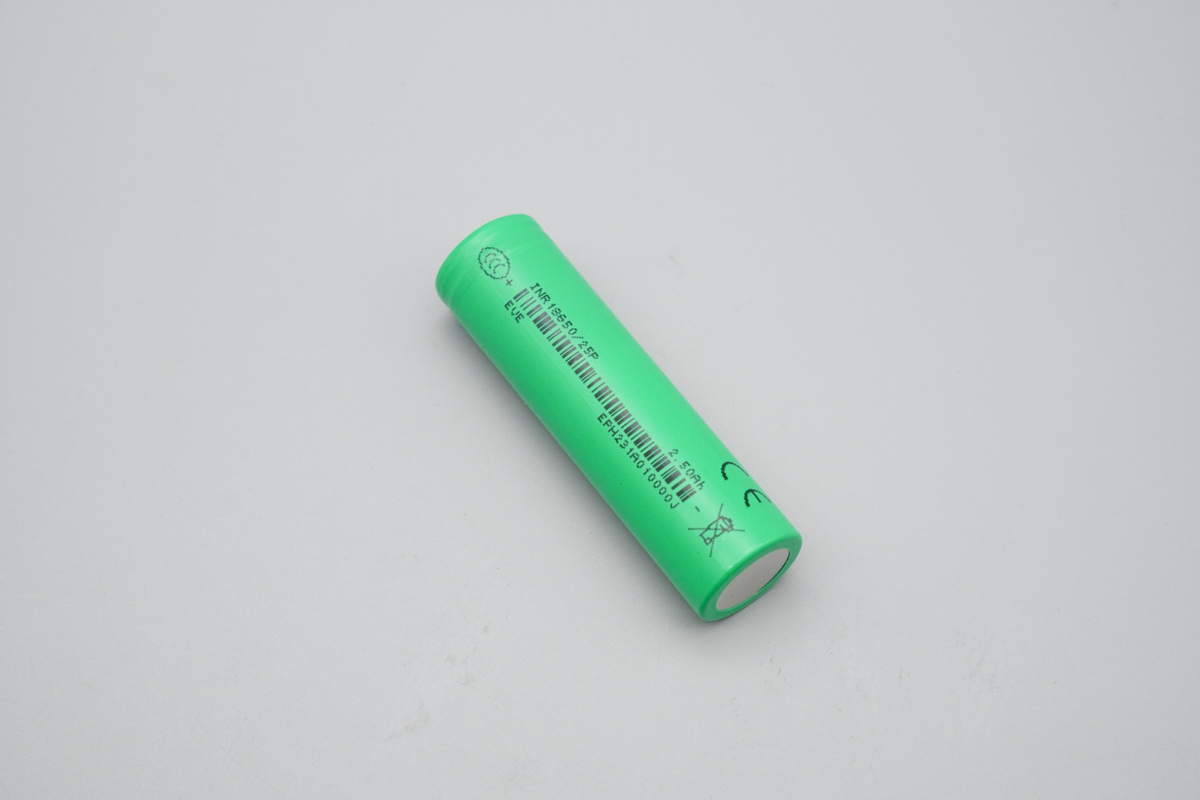 亿纬锂能INR18650-25P电芯采用绿色套膜,表面印有丝印信息。