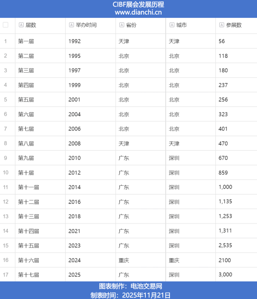 从最初的区域展会到如今覆盖 “材料 - 电芯 - 装备 - 储能 - 回收” 全产业链、吸引四大洲专业人士参与的全球最大电池会展活动,CIBF 不仅见证了中国电池产业从技术突破到产业链协同的发展历程,更成为推动全球电池技术交流、绿色转型与商业化合作的核心平台。