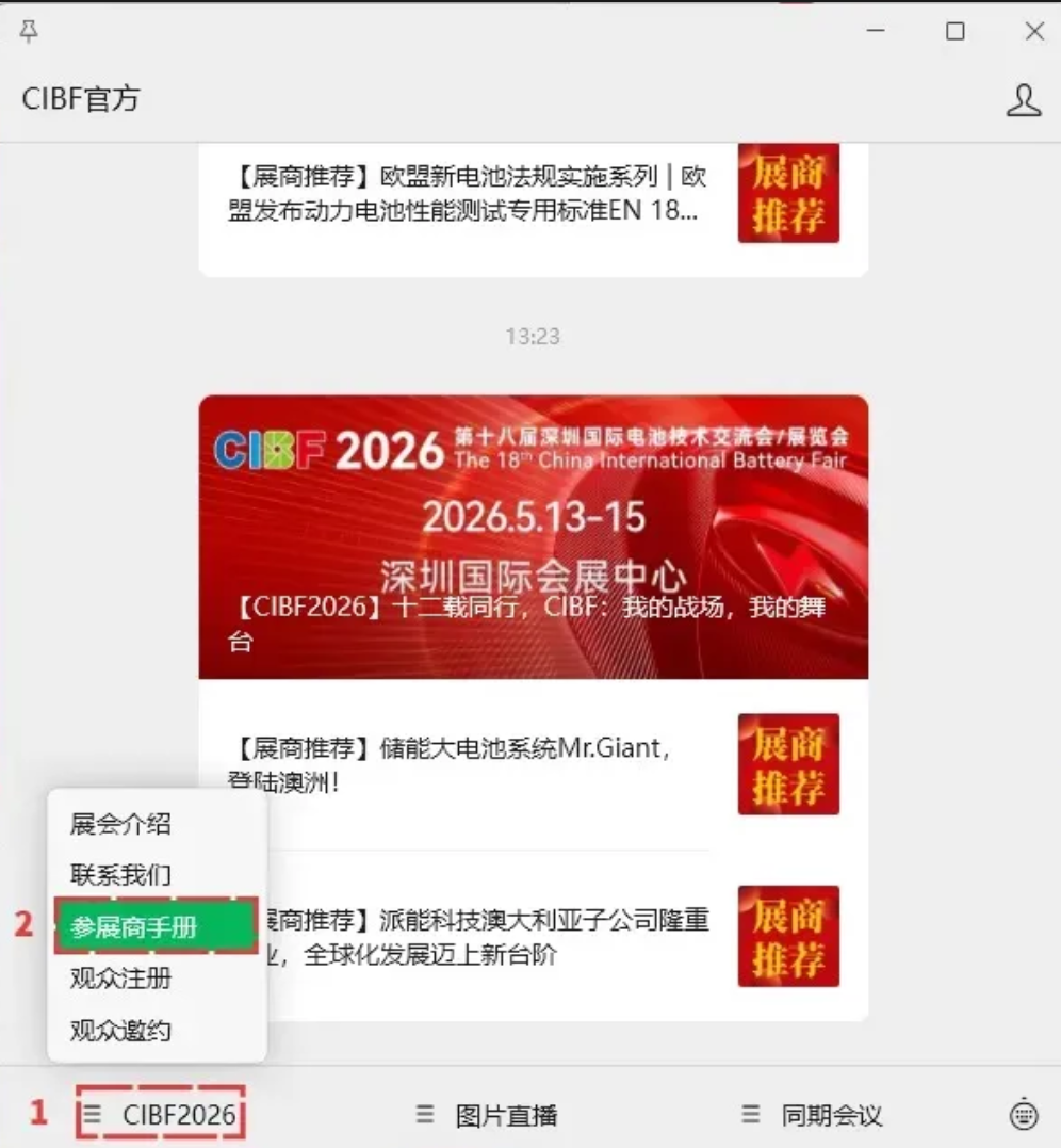 CIBF官方发布公众号推文,宣布《CIBF2026第十八届深圳国际电池技术交流会/展览会中英文参展商手册》重磅更新,新增P11-P15“推荐搭建商”板块,手册涵盖综合信息、参展规则、展馆交通、展位搭建(标准/特装)、水电气租赁、安全管理等参展全流程指引及相关表格附件,展商 “CIBF 官方” 公众号菜单 “CIBF2026 - 参展商手册” 下载。