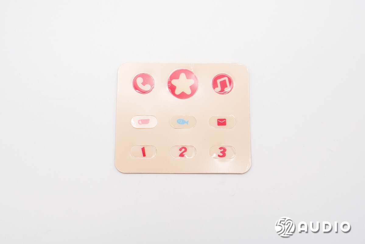 机身正面设计Pingu表情,设置有三颗圆形功能按键,用于接听挂断、暂停播放、录音/录音回放等多功能控制。