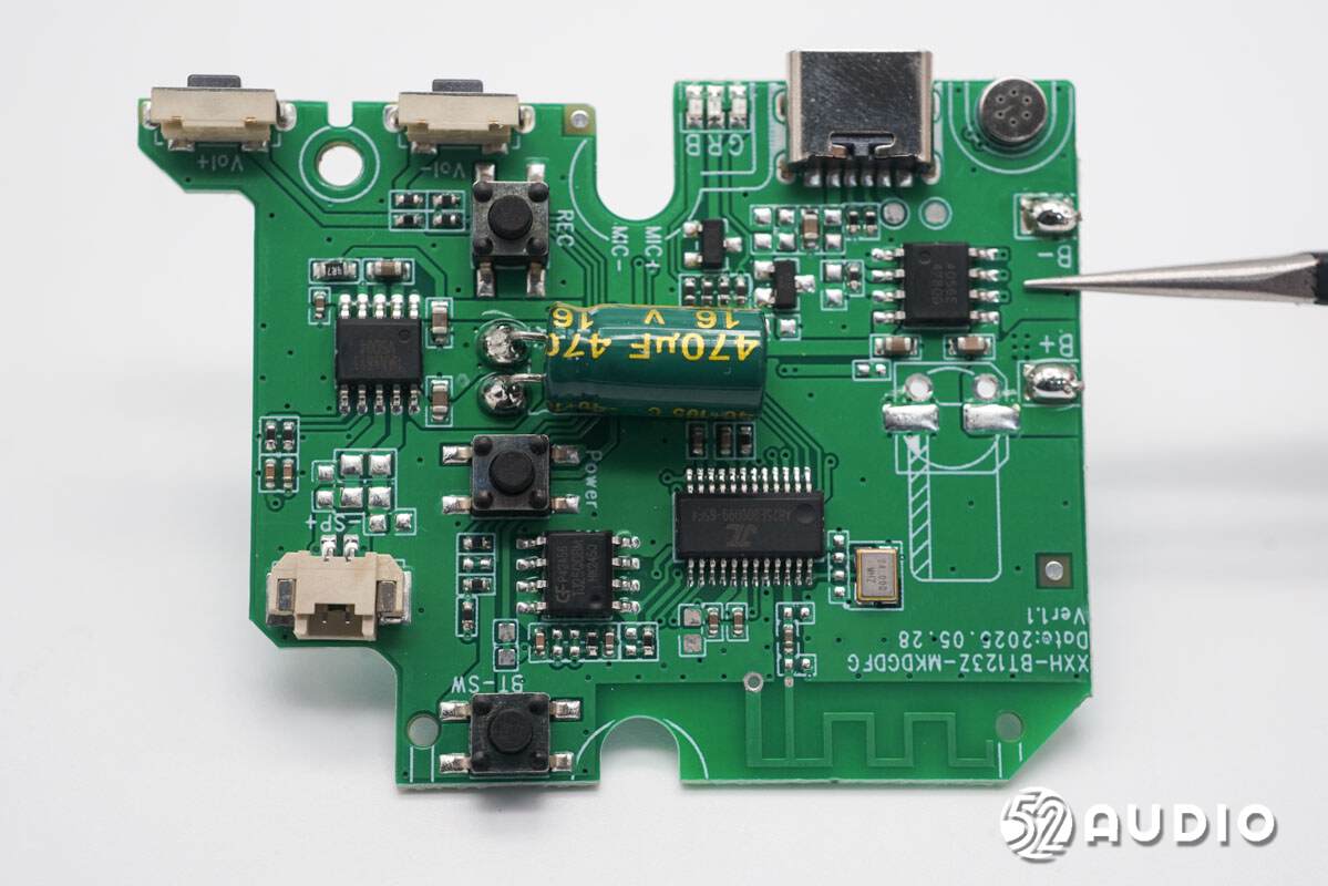 内部主要配置方面,搭载了盈百川1200mAh/3.7V圆柱形锂电池,内置40mm动圈喇叭和驻极体麦克风,采用了HYNITRON海栎创HAA9811单声道音频功率放大器,JL杰理AC6965E蓝牙音频SoC等方案。