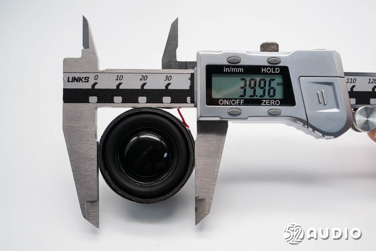 经我爱音频网实测,动圈喇叭直径约为40mm。