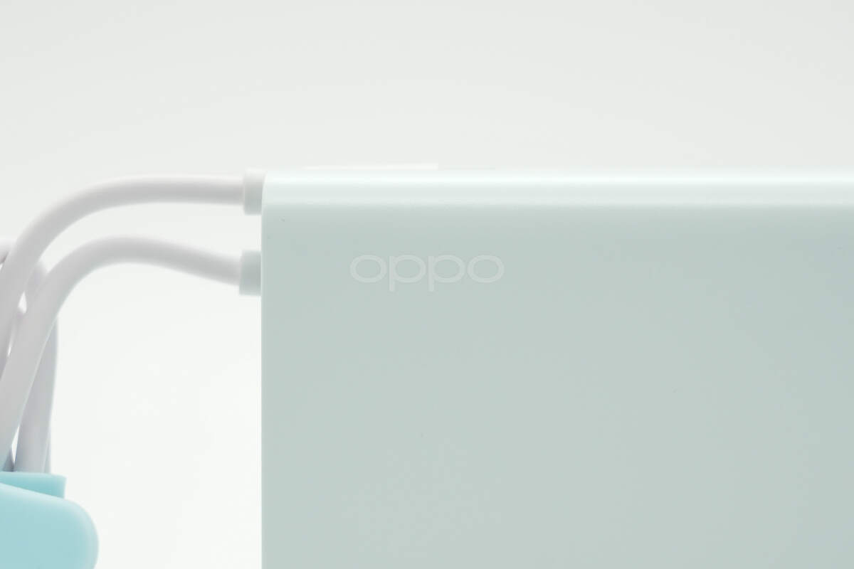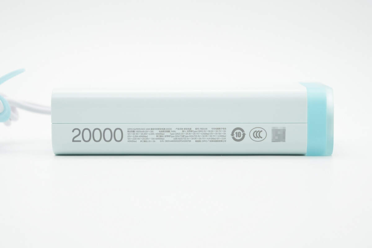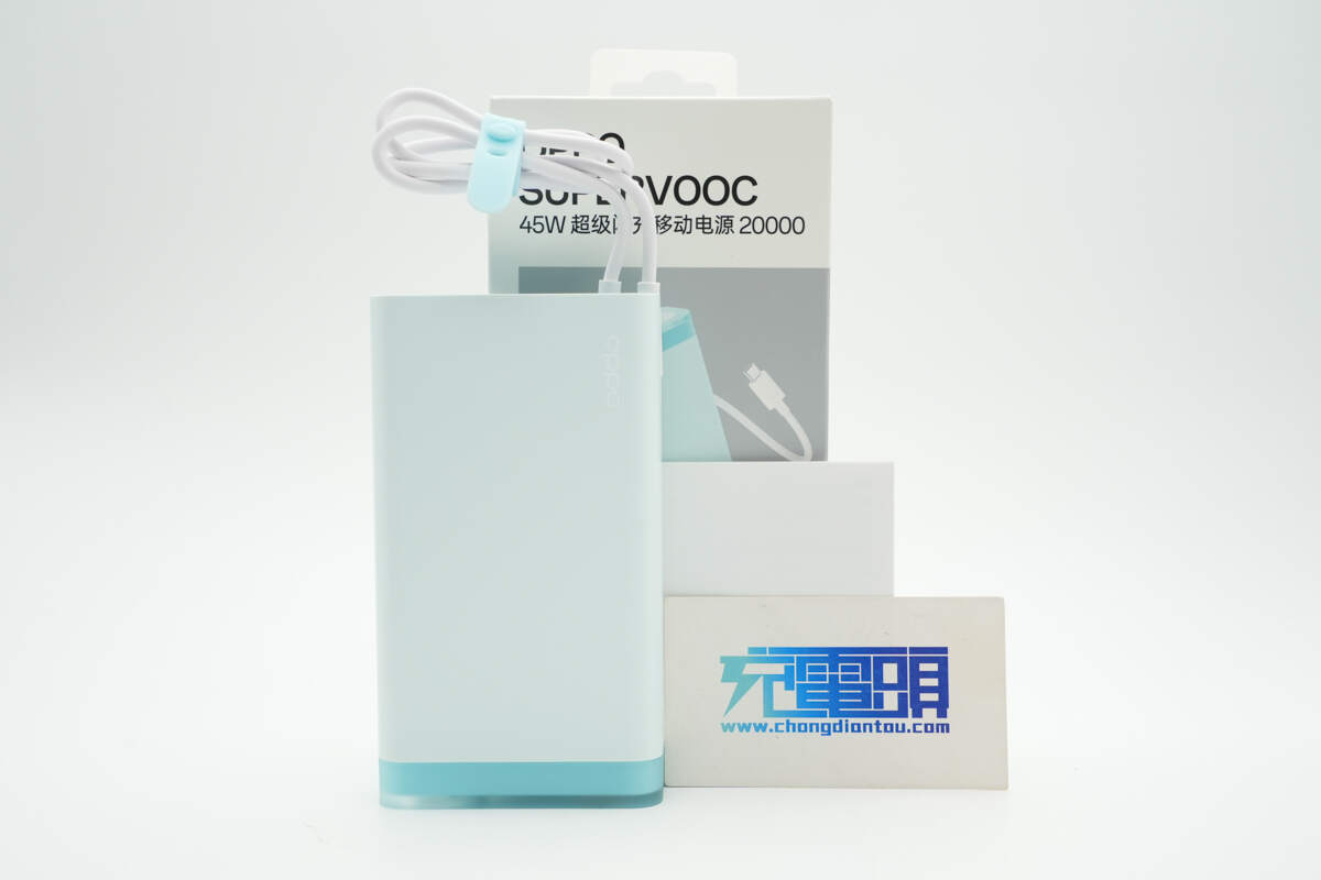 OPPO 45W自带线超级闪充移动电源采用半透明果冻机顶拼接亲肤质感机身,整体为蓝色系配色,整体设计精简而充满活力气息。