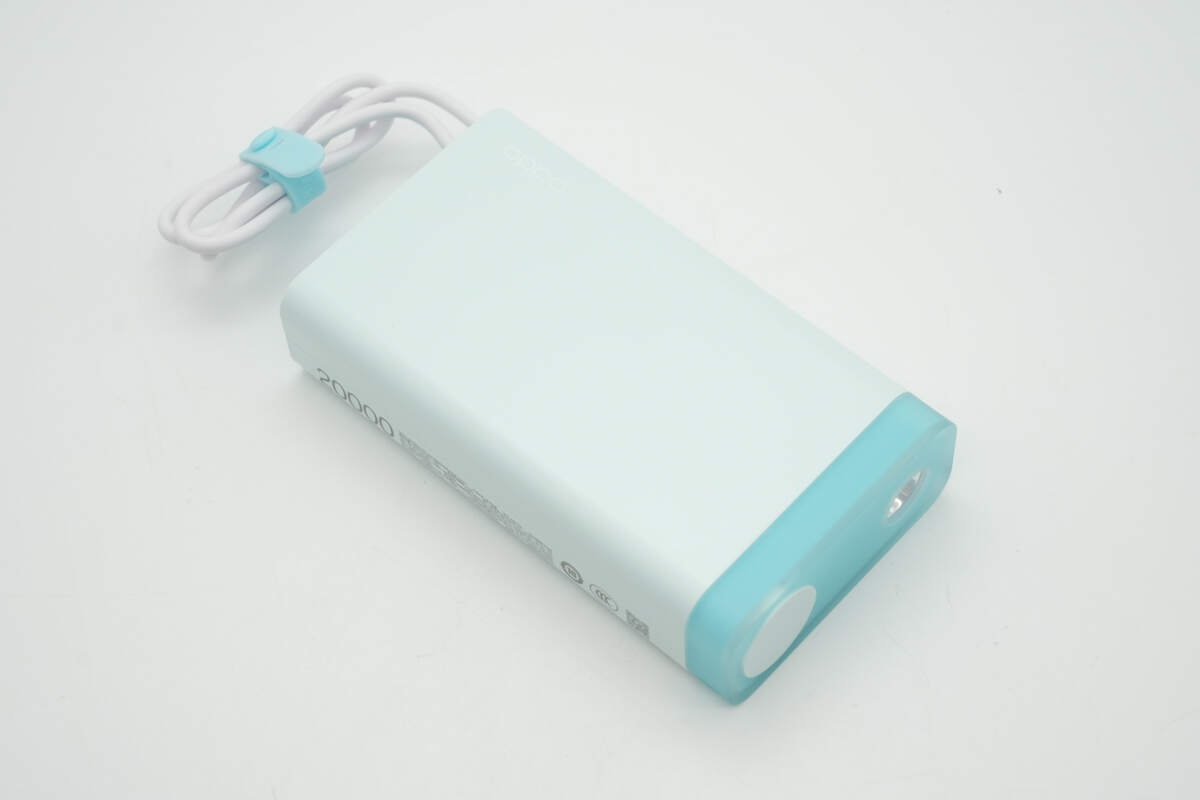 OPPO 45W自带线超级闪充移动电源采用能量果冻快充移动电源系列相同设计风格,自带USB-C线降低出行负担,同时使用方便还能当提绳。搭载20000mAh大容量电芯,可为手机多次充电,保证续航。此外配置有LED照明灯,适用拍摄补光、应急照明等场景,实用性更好。