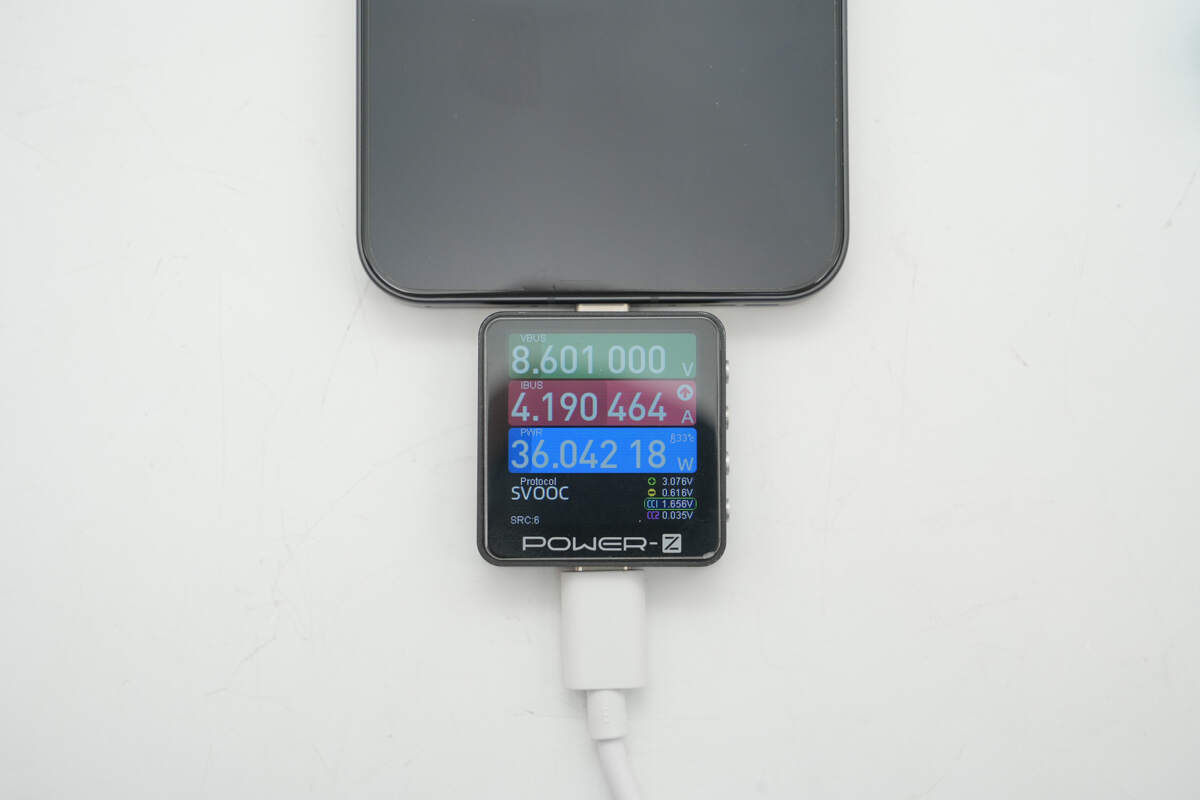 当充电功率爬升到稳定状态,测得此时的充电功率约为36.04W。