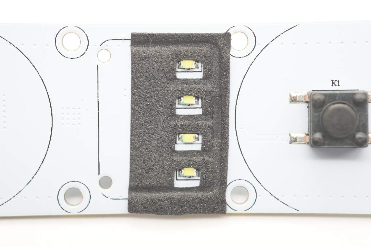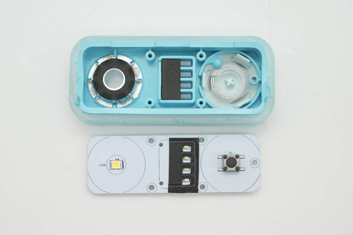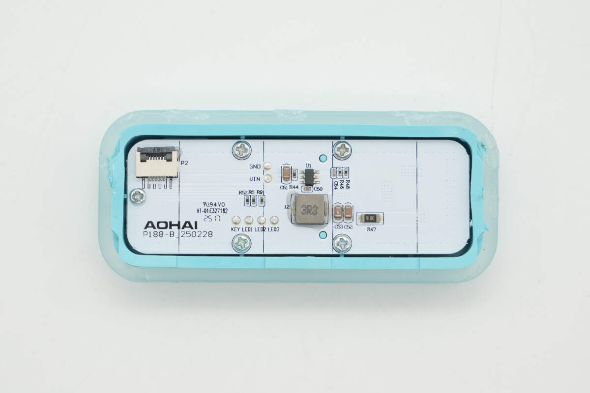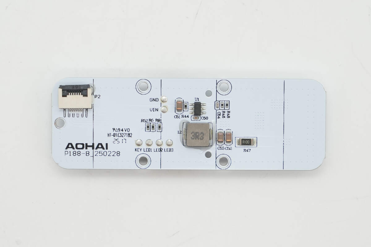 底部LED照明灯模块采用螺丝与外壳固定,通过排线插拔式连接主控PCB板。