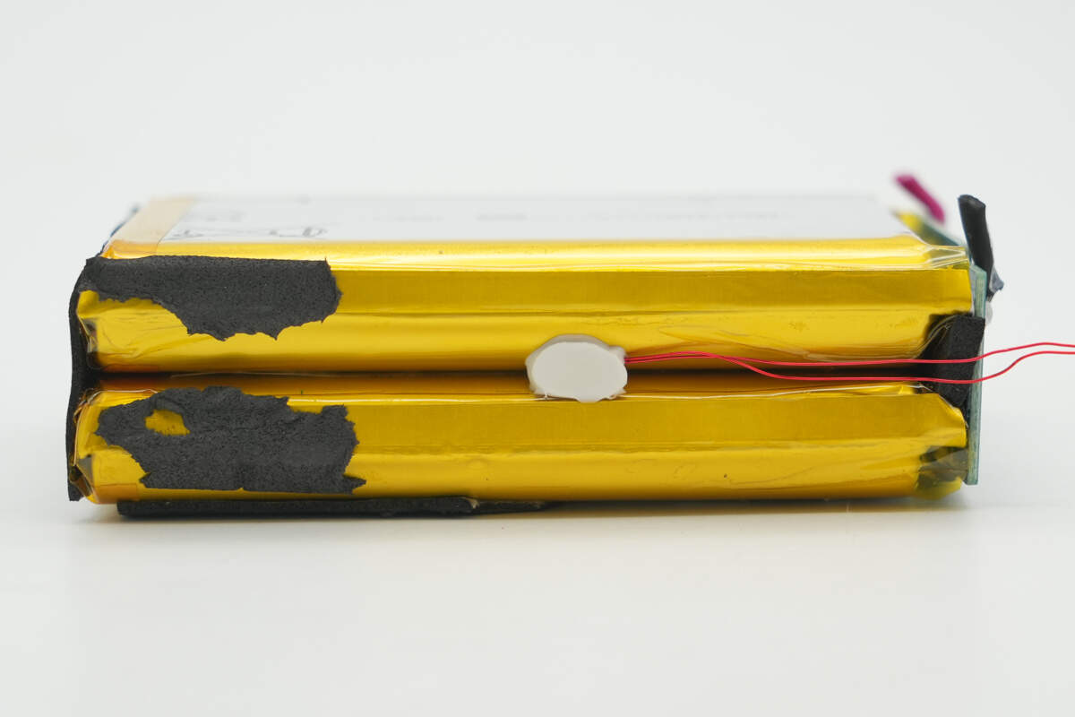 取出电芯,侧面还设有热敏电阻用于监控电芯温度,并且打胶固定。
