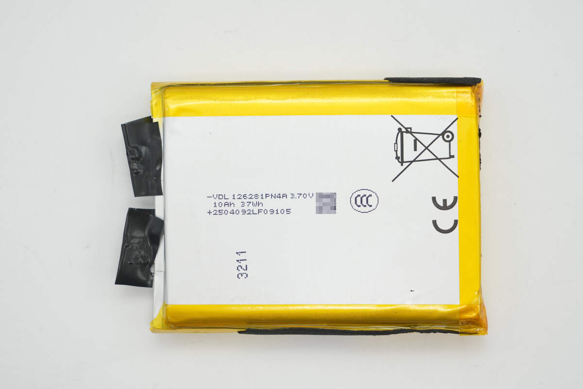 两块电芯来自VDL紫建,型号126281PN4A,标称电压3.7V,额定容量10Ah,能量37Wh,已通过CCC、CE认证。