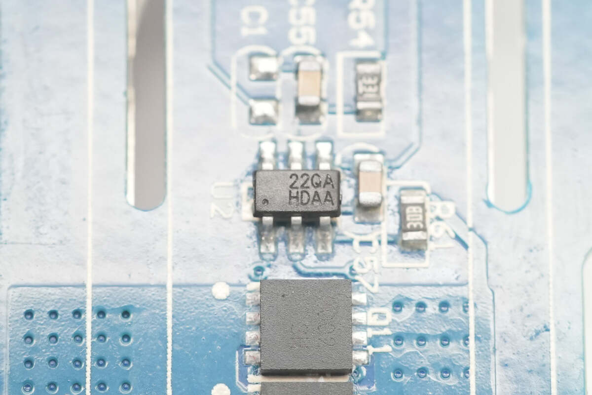 锂电保护芯片来自创芯微,丝印22QA,实际型号为CM1025-QA,这是一款专用于2串锂/铁电池的保护芯片,内置有高精度电压检测电路和电流检测电路。支持过充电、过放电、放电过电流、短路、充电过电流的检测。