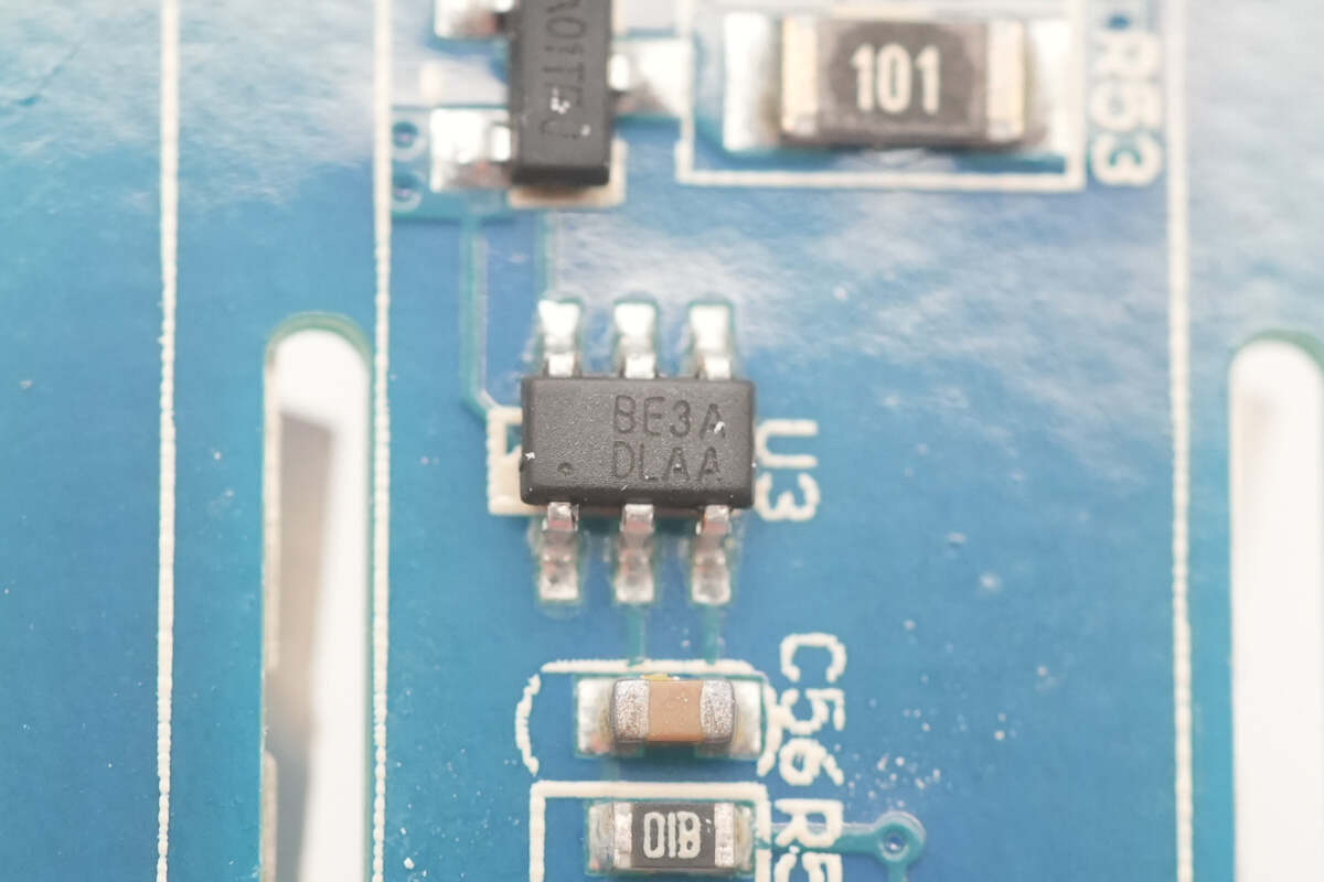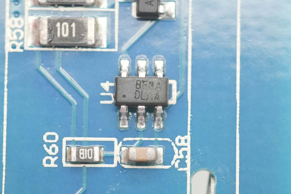 均衡控制芯片来自创芯微,丝印BE3A,实际型号为CM1010-E,芯片内置有高精度电压检测电路和延迟电路,通过检测电池的电压实现对电池组的均衡,适用于多节锂离子/锂聚合物电池包的均衡。
