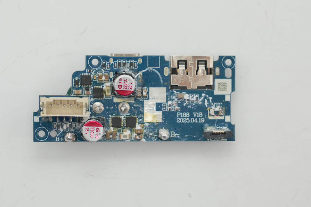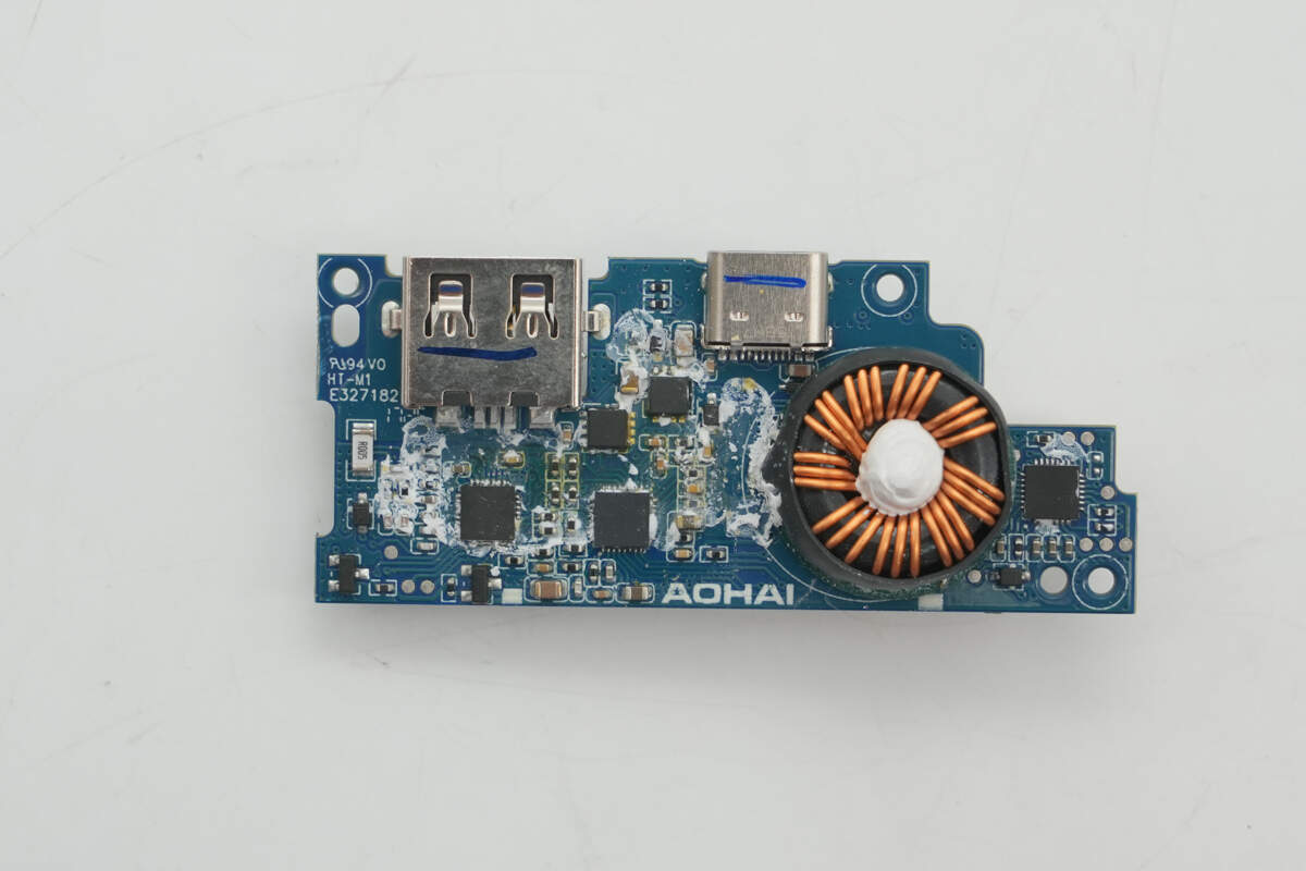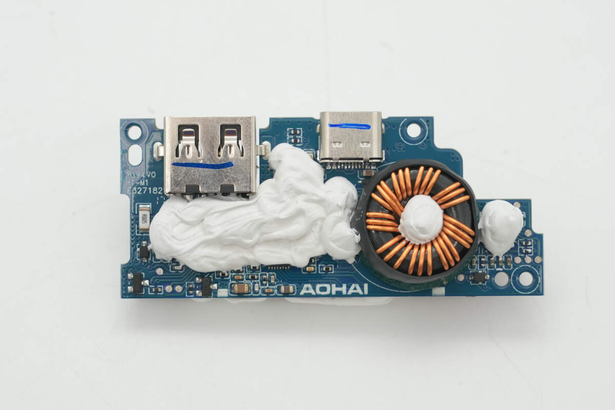 主控PCB板也是使用螺丝固定,板子正面大量填充白胶,USB-C自带线也是插拔式连接设计。