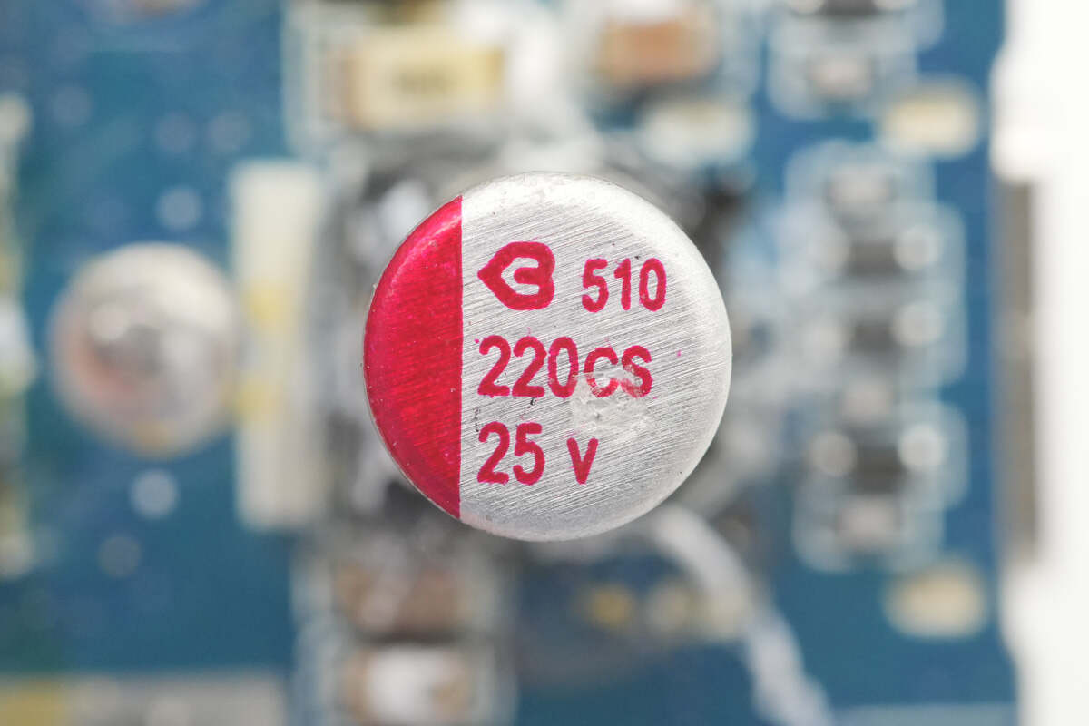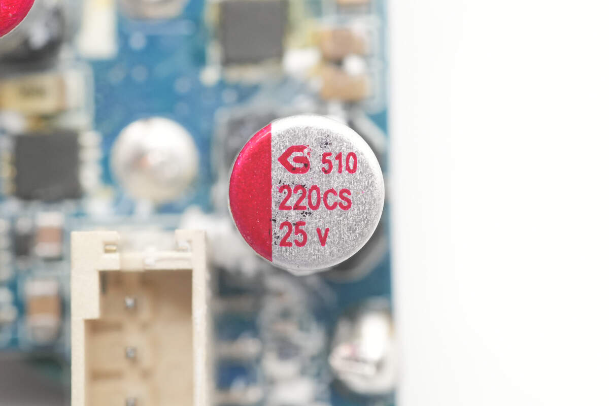 接口端滤波固态电容也是来自绿宝石,规格为25V220μF。