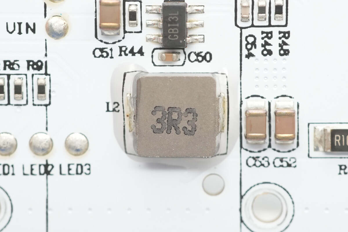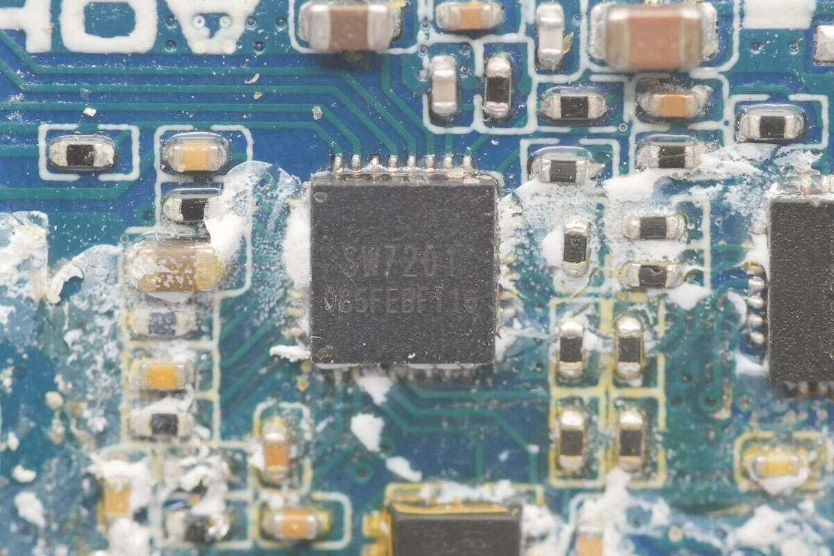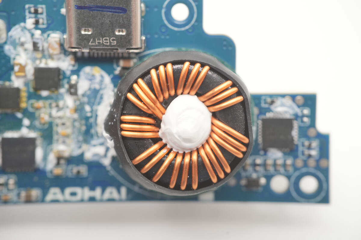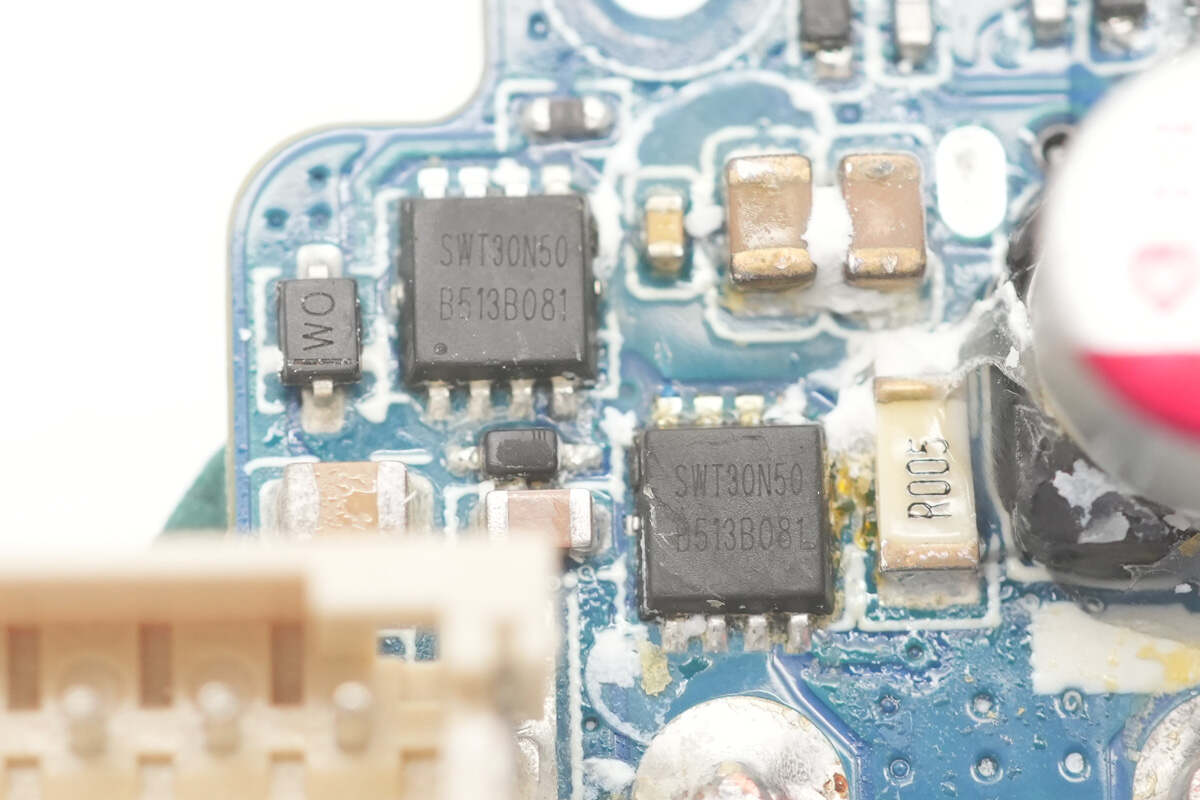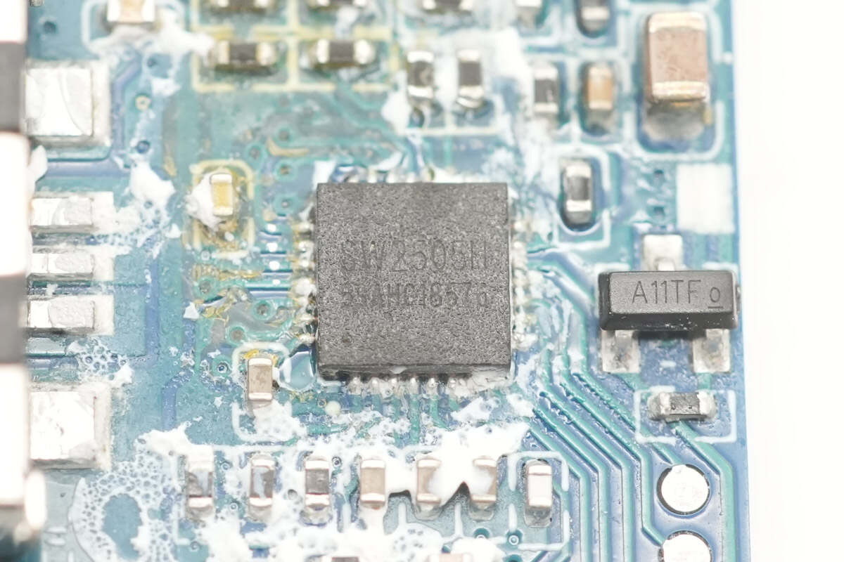 另一颗智融科技SWT30N50同步升降压开关管布局在板子背面。此外USB-C自带线输出VBUS开关管也是采用智融科技SWT30N50。