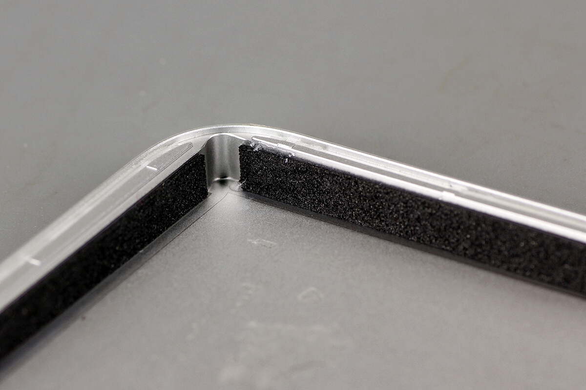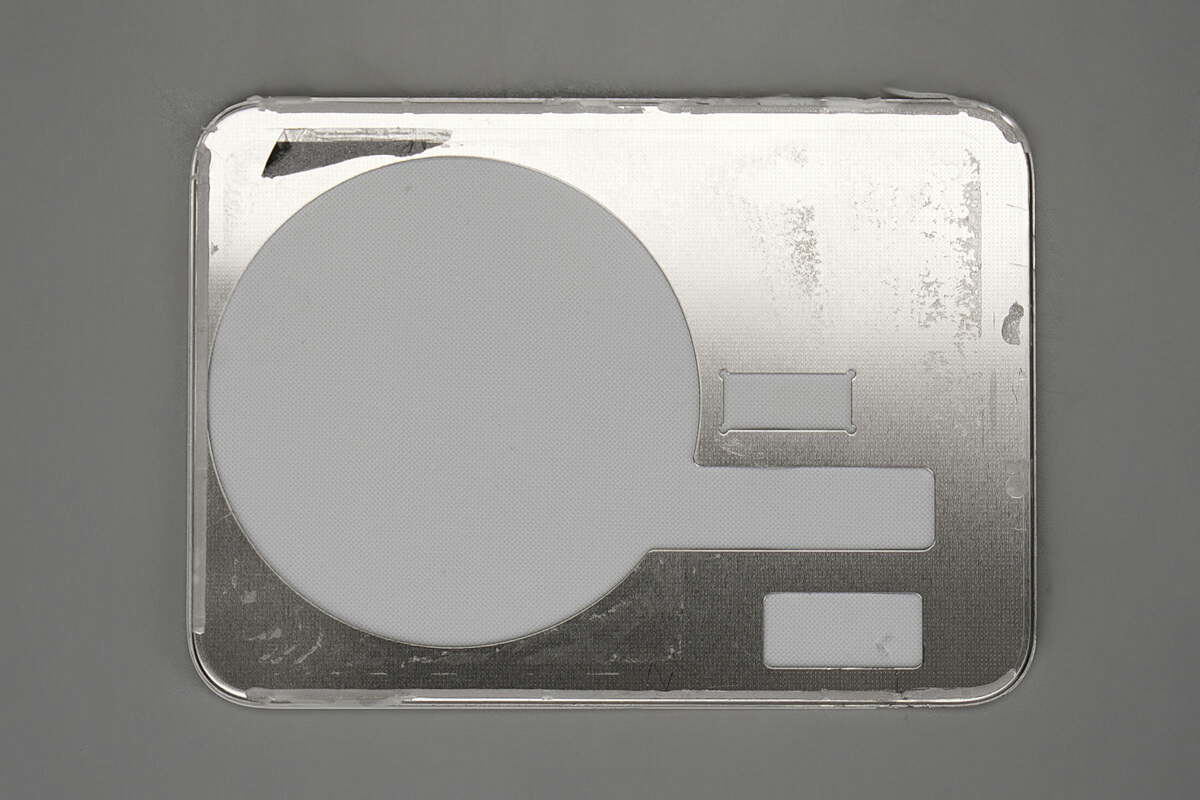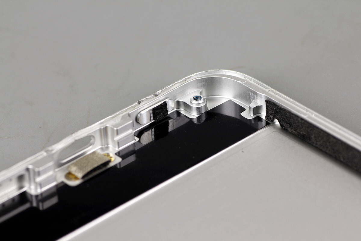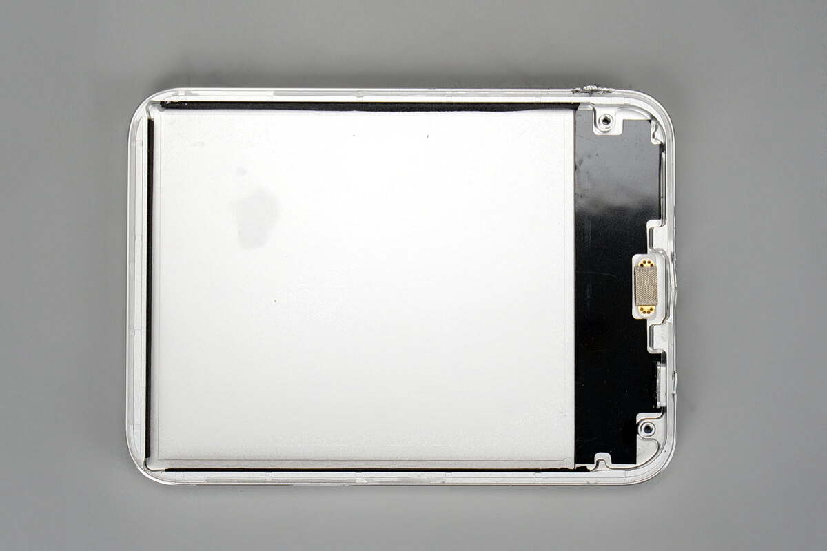 首先揭开充电宝面板,为玻璃纤维材质,底部为不锈钢盖板。