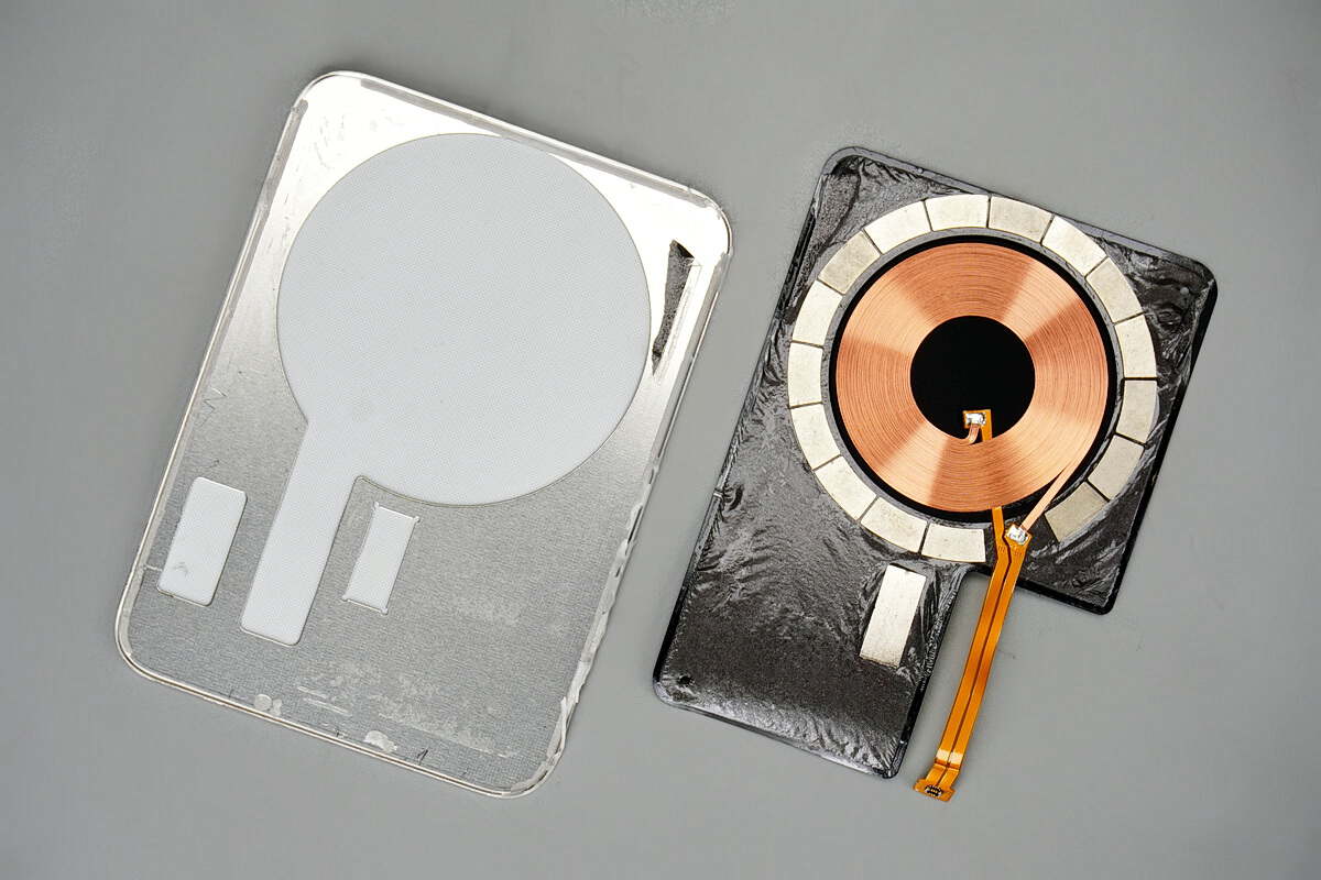 断开无线充电线圈连接器,分离充电宝机身和盖板。