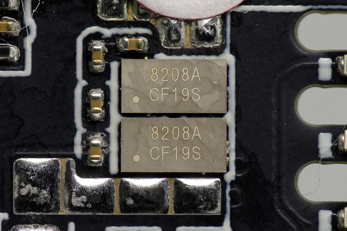 电池保护管来自长晶科技,丝印8208A,型号CS8208SP-A,双NMOS,耐压12V,导阻2.1mΩ,采用CSPC3015-10封装。