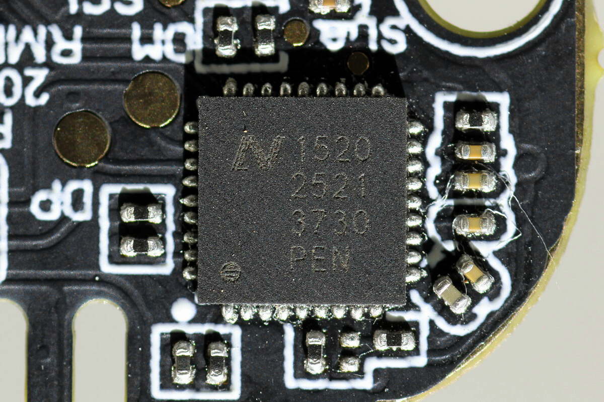 协议芯片来自伏达半导体,型号NU1520,芯片内部集成32位MCU,主频为36MHz,集成128KB FLASH和8KB SRAM,具备无线充电驱动信号输出,芯片内置11通道低速ADC和单通道高速ADC,内部集成1.5V LDO。
