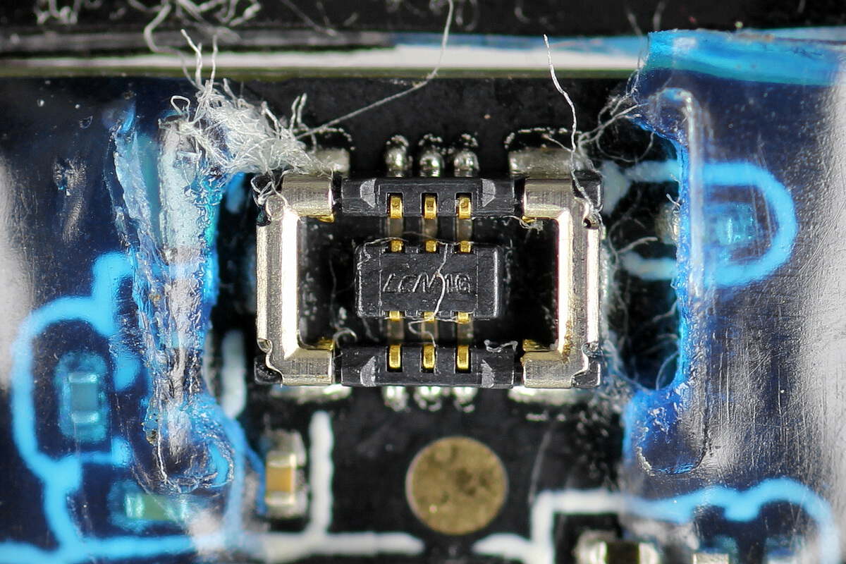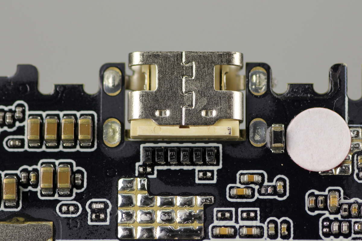 USB-C母座采用白色舌片,金属外壳粘贴导电布接地。