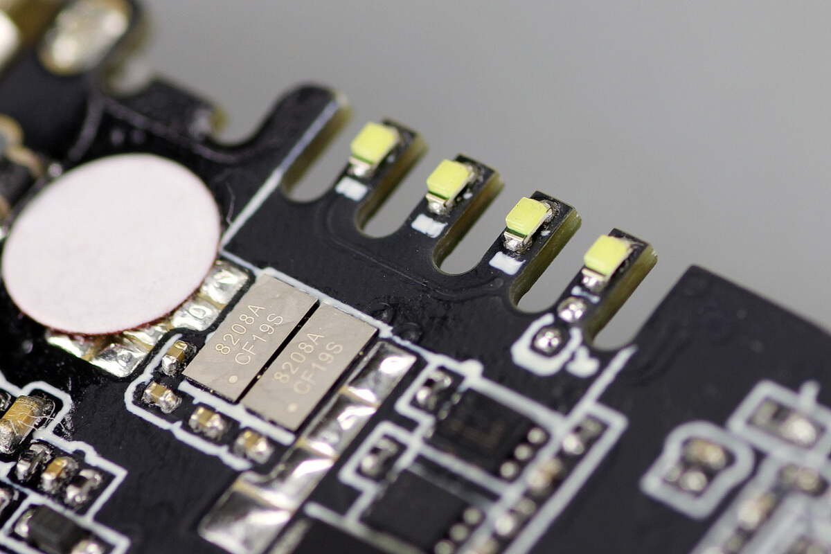 PCBA模块背面右侧设有电池保护芯片和电池保护管,PCBA模块镂空放置合金电感,降低厚度。