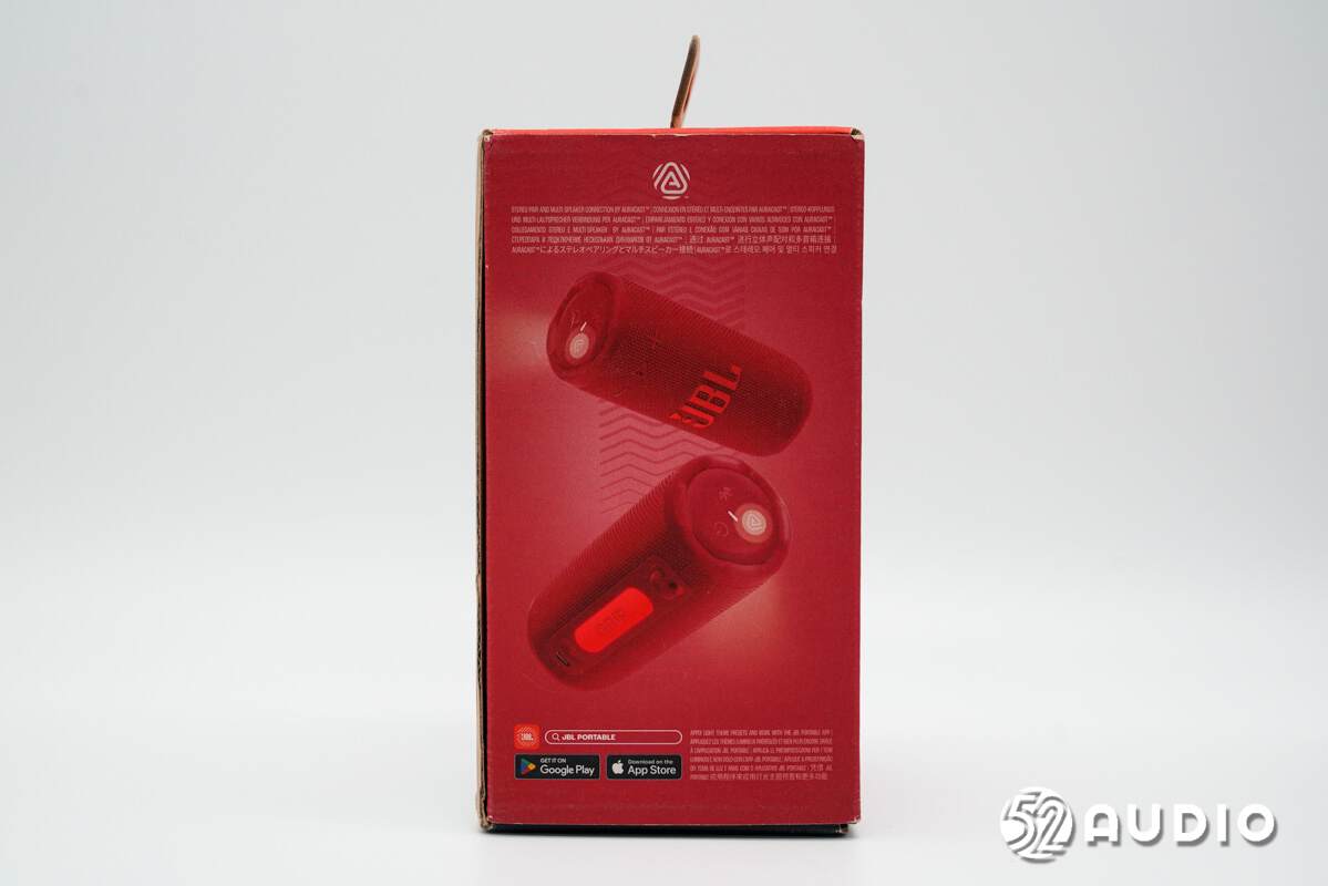包装盒另外一侧突出介绍了通过AURACAST进行立体声配对和多音箱连接功能。