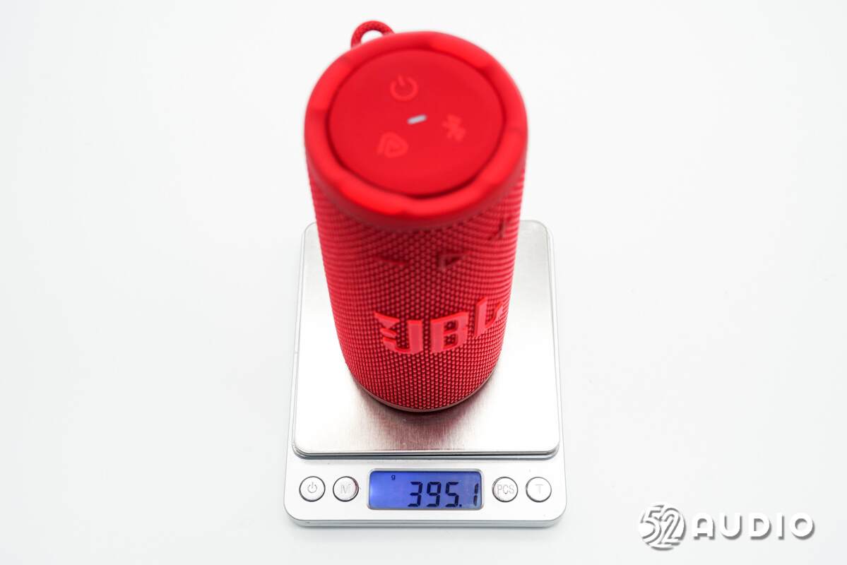 经我爱音频网实测,JBL GRIP霓虹罐便携式蓝牙音箱整机重量约为395.1g。