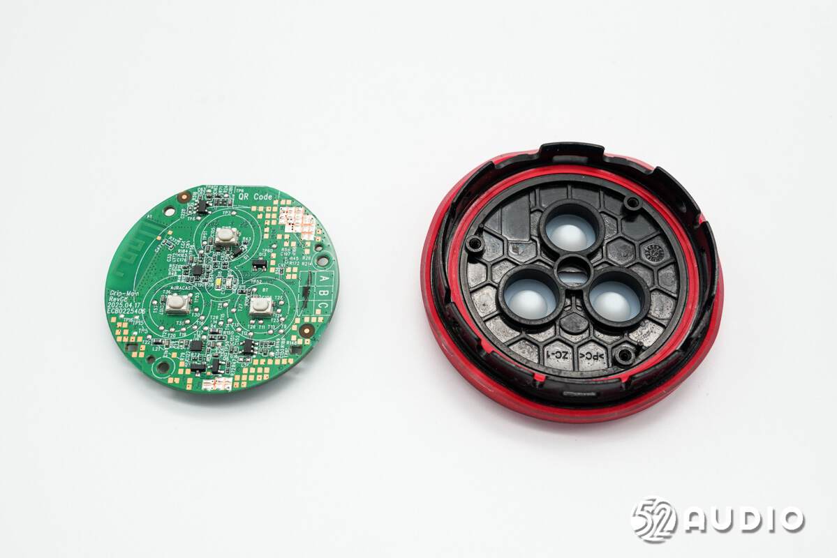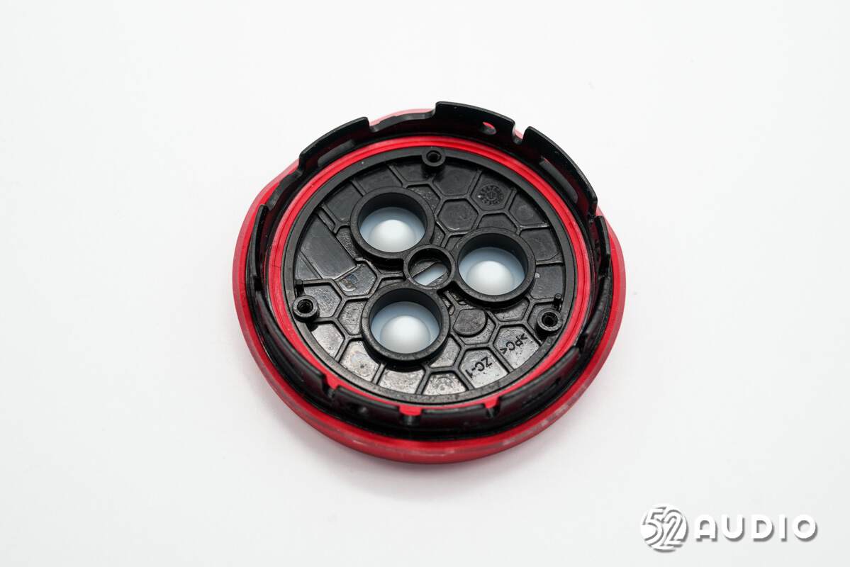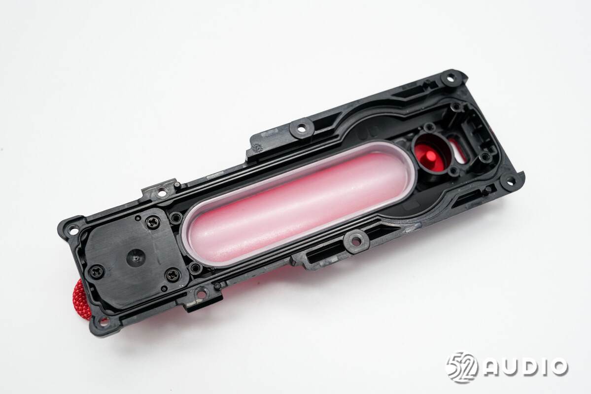 音腔背面结构一览,设置有方形被动辐射振膜,用于提升低频量感。