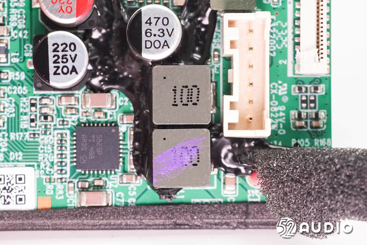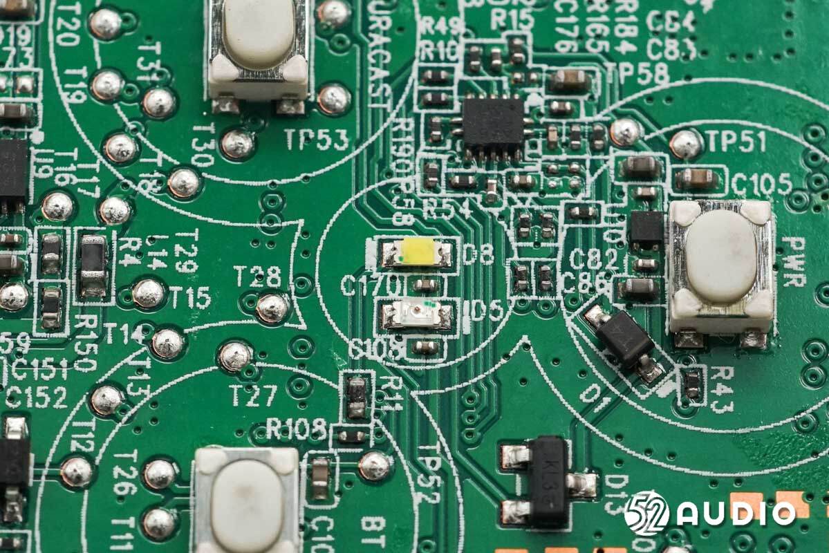 主板上,搭载了Actions炬芯科技ATS2875H新一代高性能蓝牙音频SOC,用于无线连接和音频数据处理;采用LPS微源半导体LP5305A过压过流保护IC,保障电路安全。功放小板上,采用了TI德州仪器TAS5825P D类音频放大器和TPS61288同步升压转换器,以及SGMICRO圣邦微SGM41519电源管理芯片等方案。