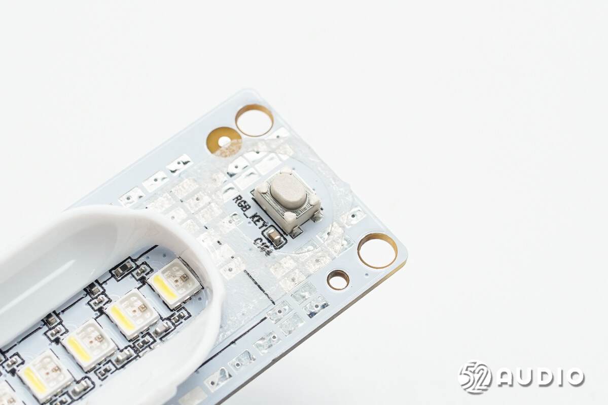 炫彩灯小板一侧电路一览,设置有16颗RGB LED灯珠提供光源。外围有遮光罩,使灯光更加柔和。