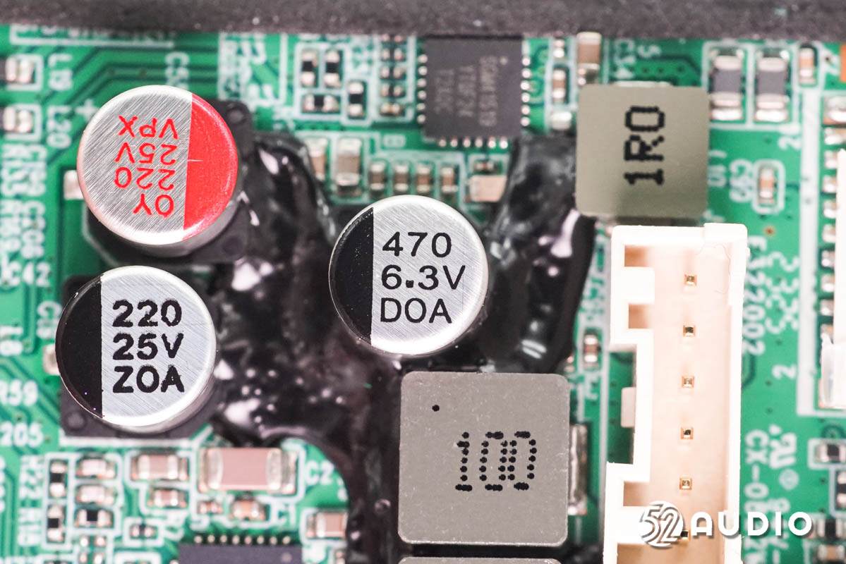 470μF 6.3V耐压的滤波电容,用于扬声器功放供电滤波。