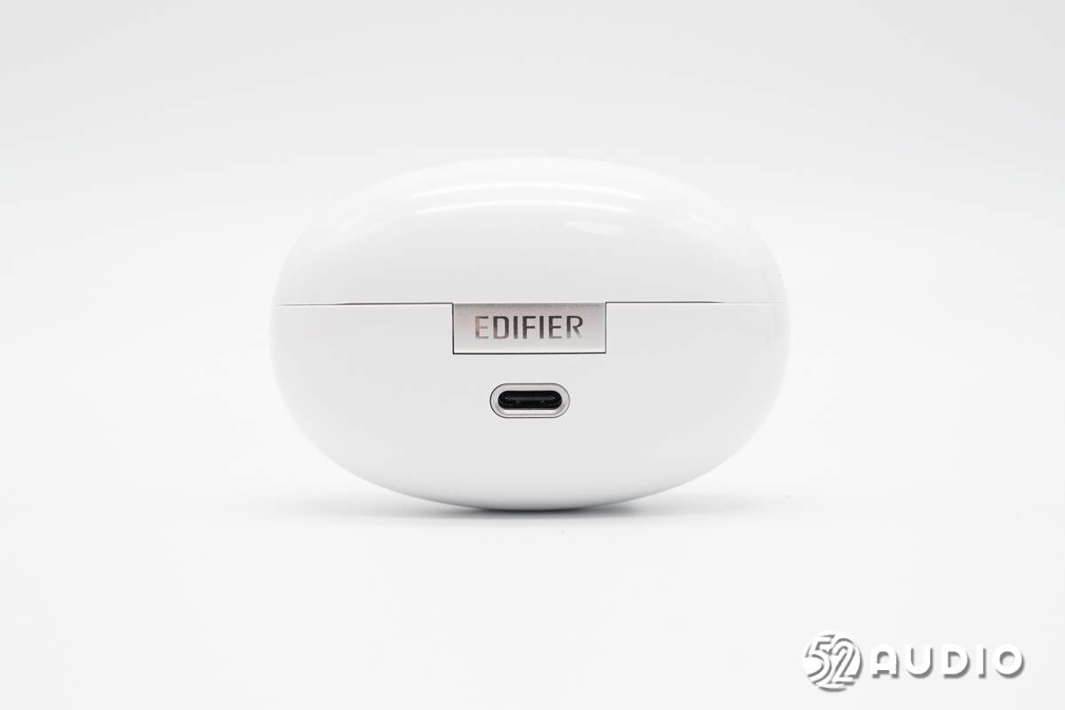 后端腔体外侧外观一览,设计有“EDIFIER”品牌LOGO,设置有降噪麦克风拾音孔。