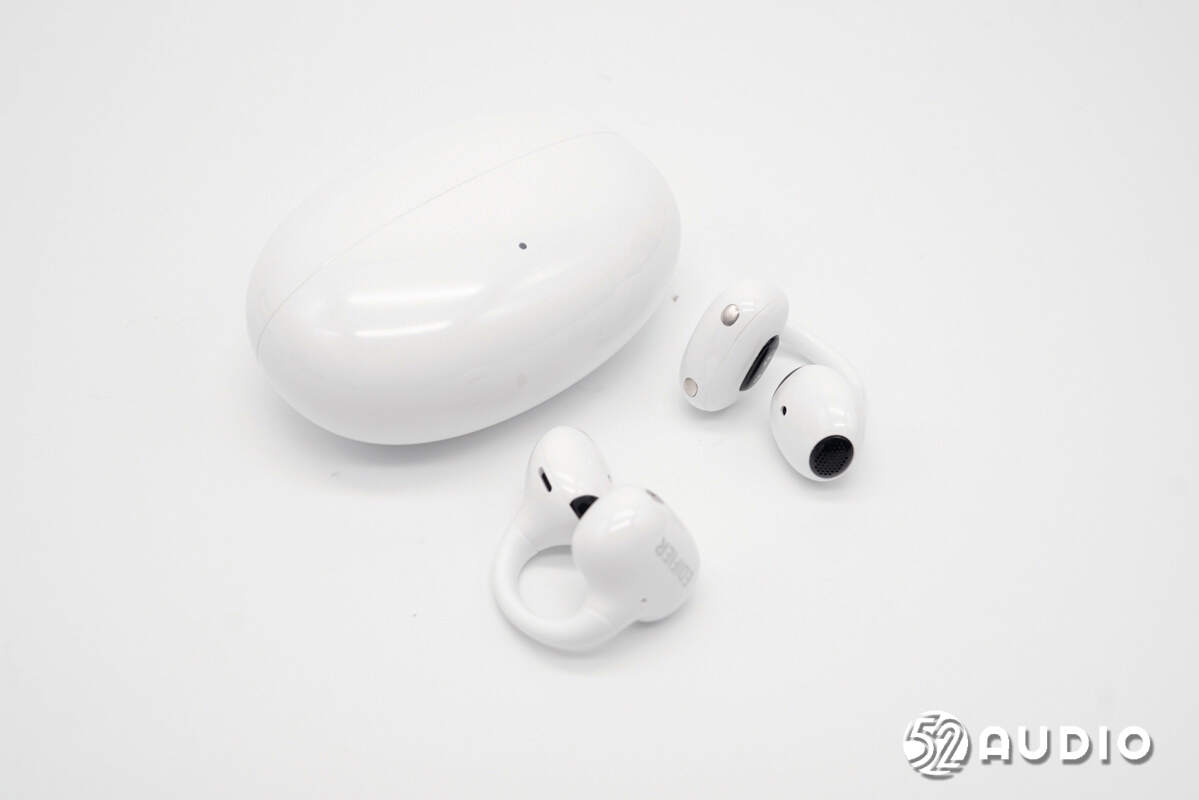 漫步者LolliClip耳机采用「专利多曲率空气弧佩戴」设计,C型桥内嵌高韧性镍钛合金丝,外部软胶包裹,佩戴夹持舒适,不易变形。音腔采用类似半入耳式耳机的设计,通过调节与外耳道的贴合度,可实现开放式聆听和主动降噪两种体验。