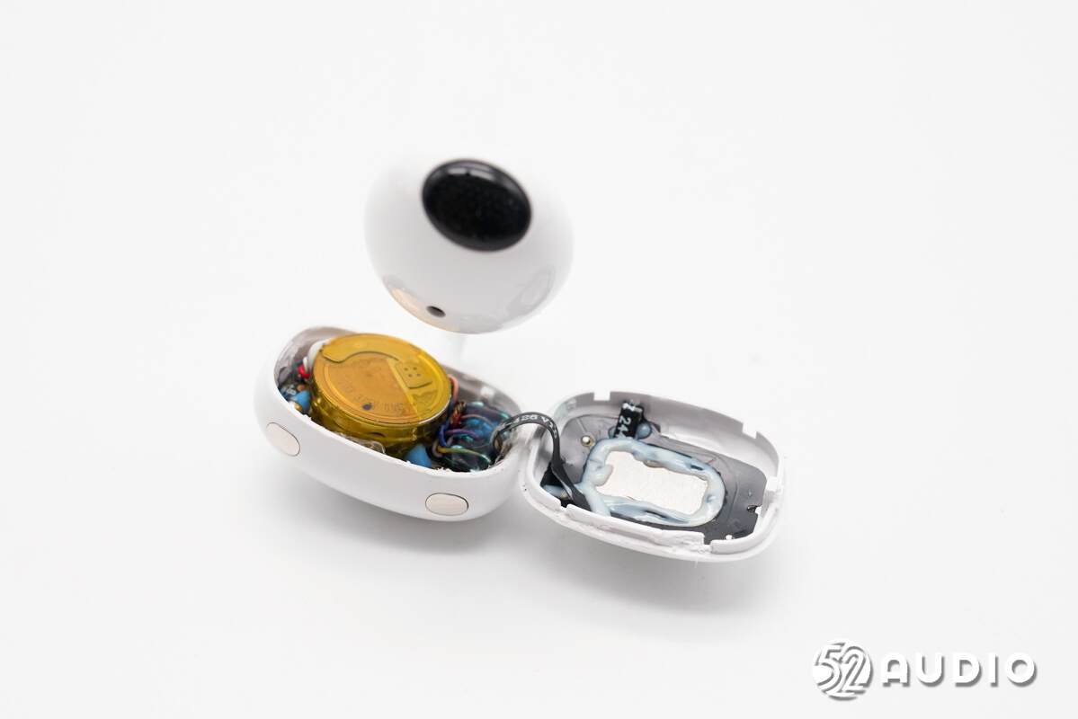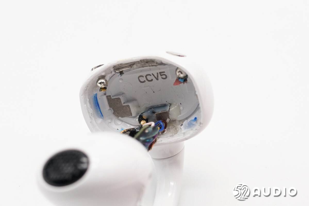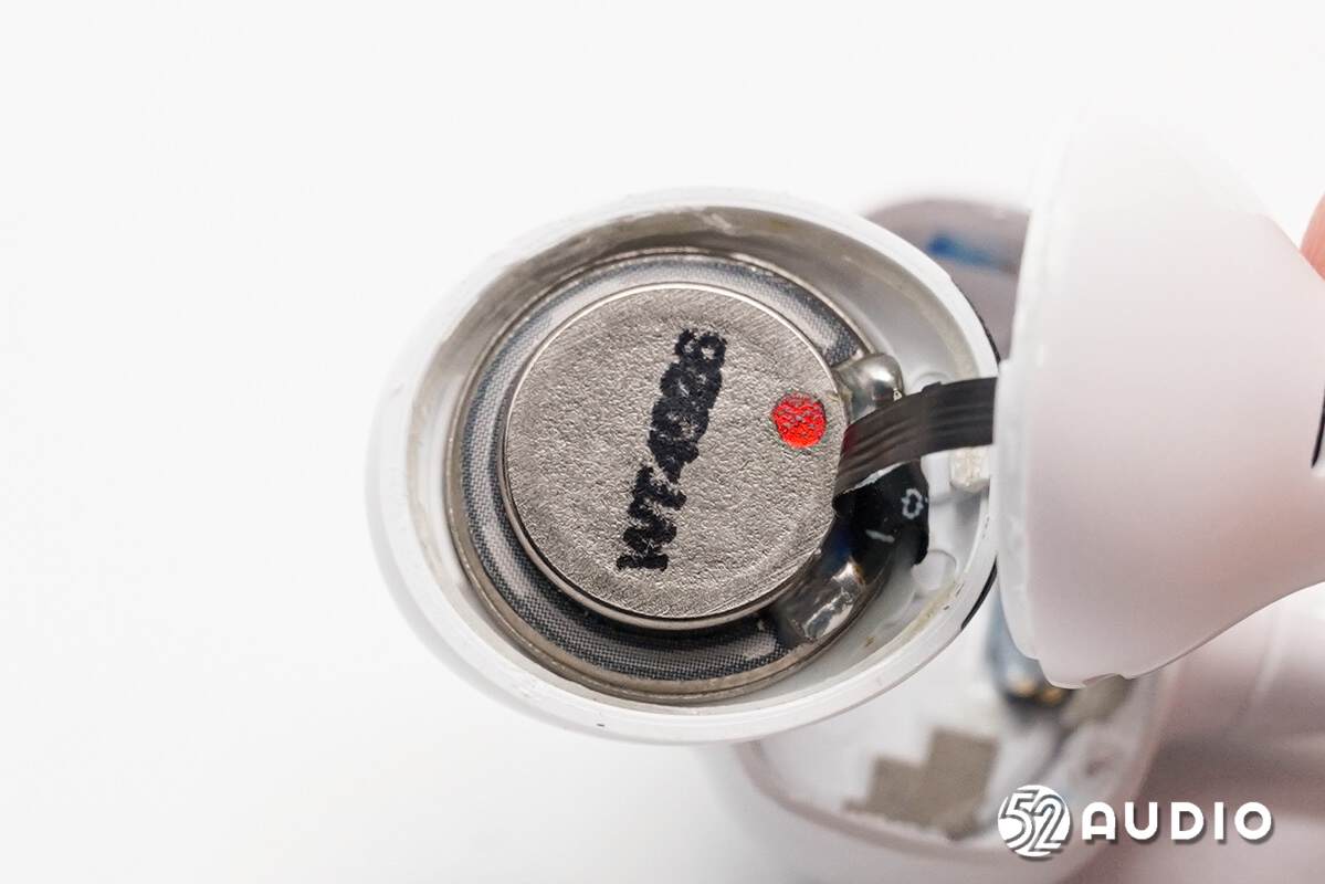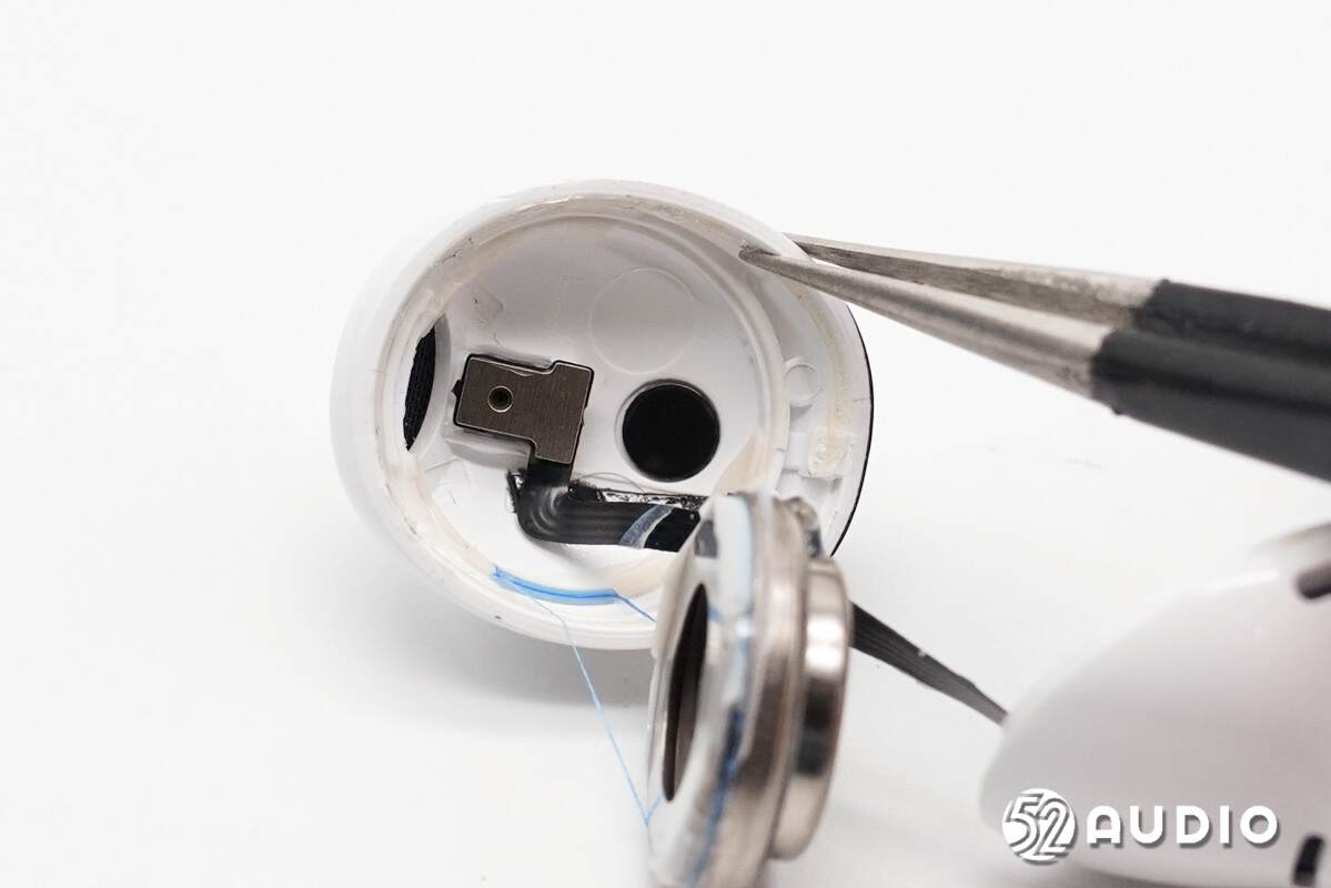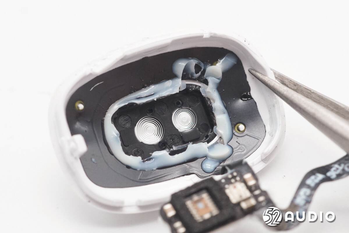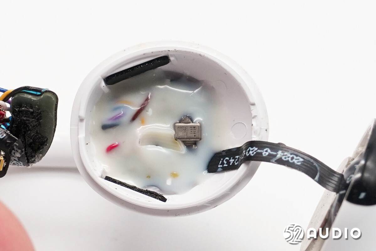 掀开扬声器,前腔底部固定有后馈降噪麦克风。