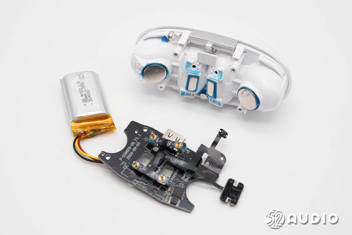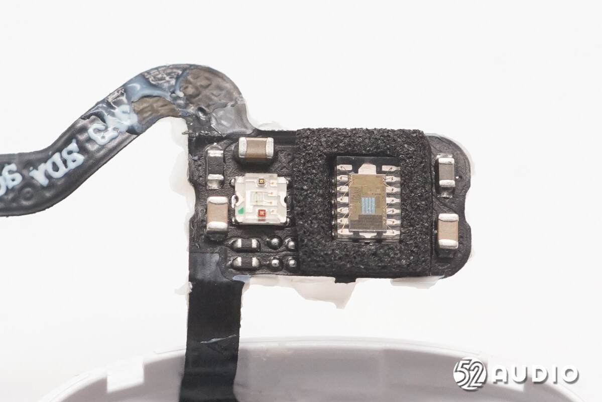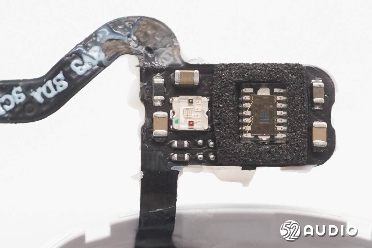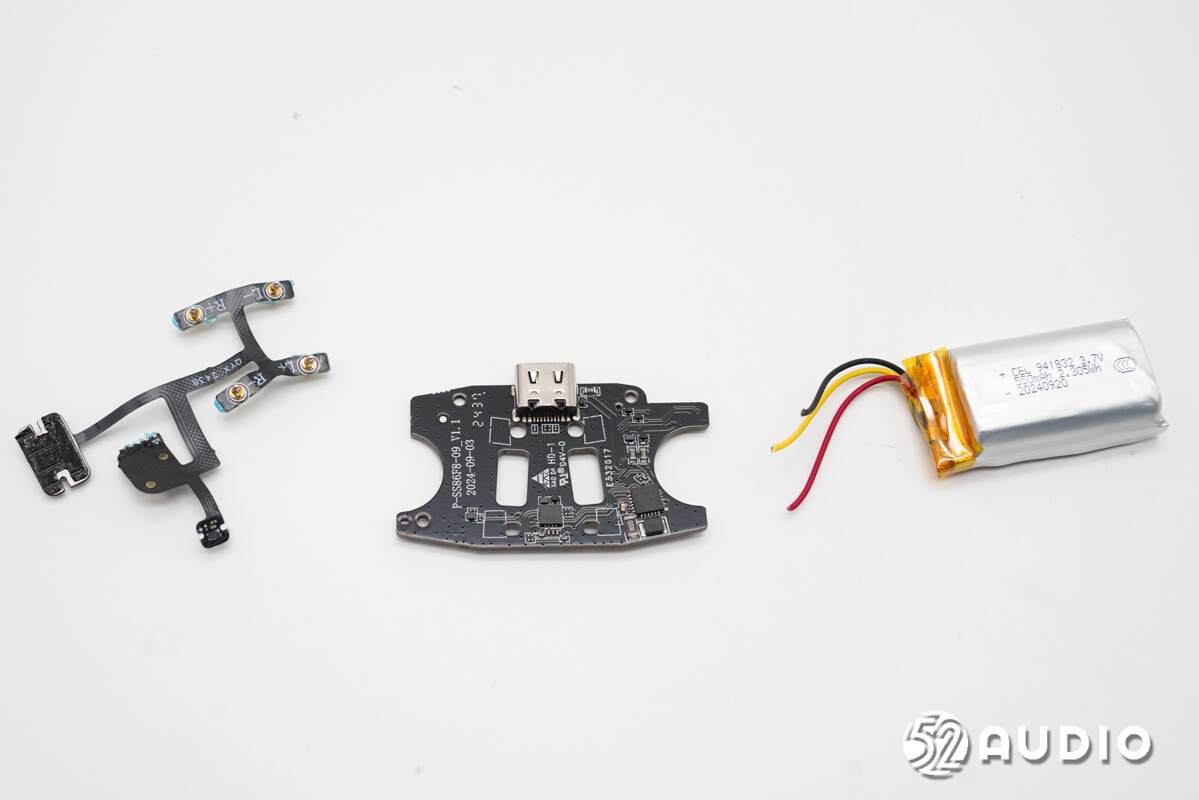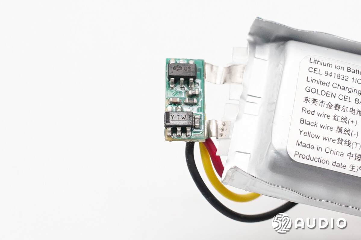 拆开耳机后端腔体,内部设置有电池、主板和健康监测模块。