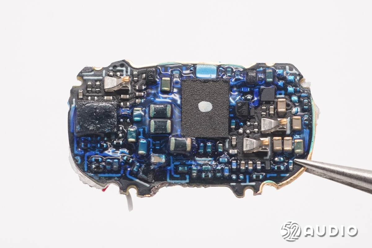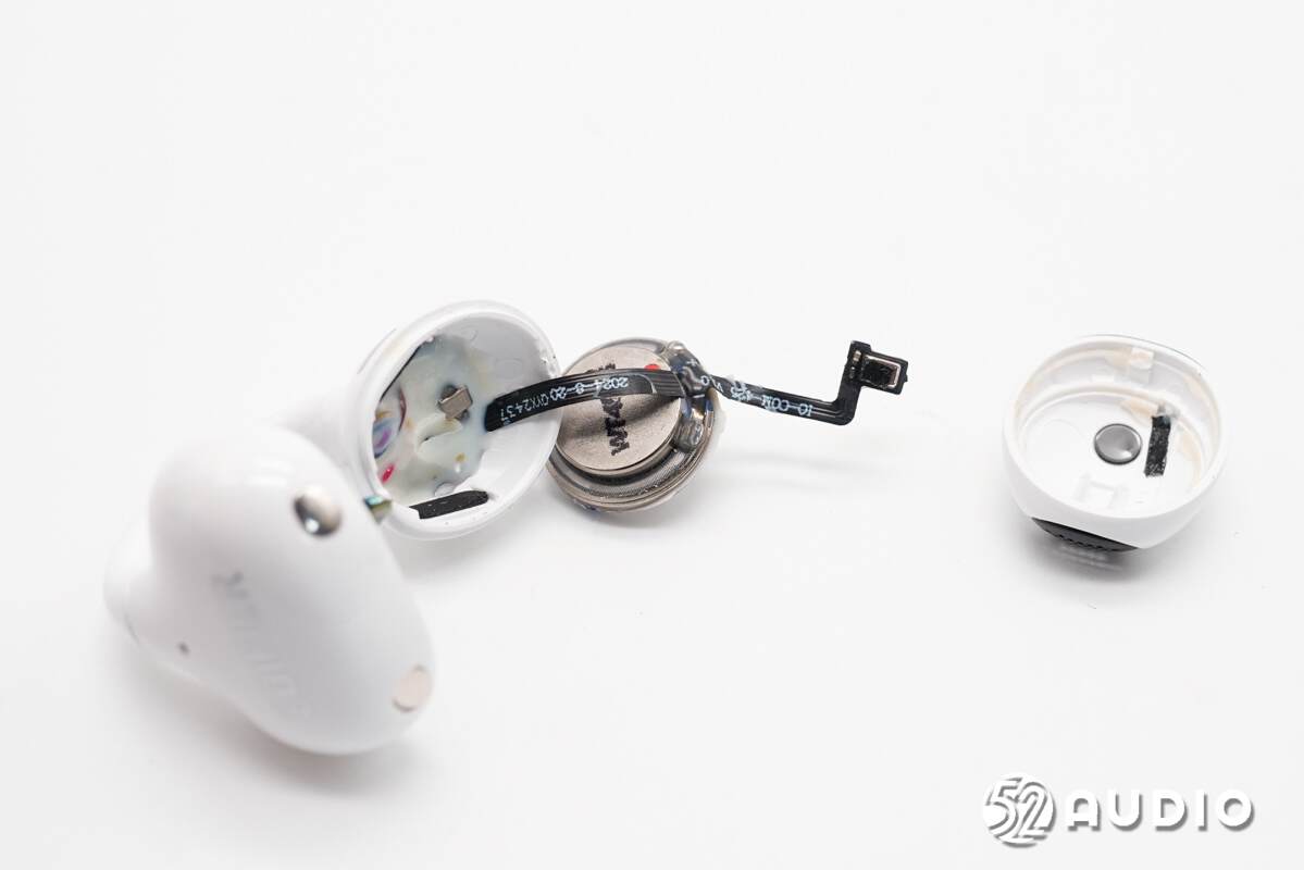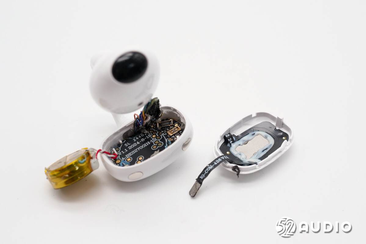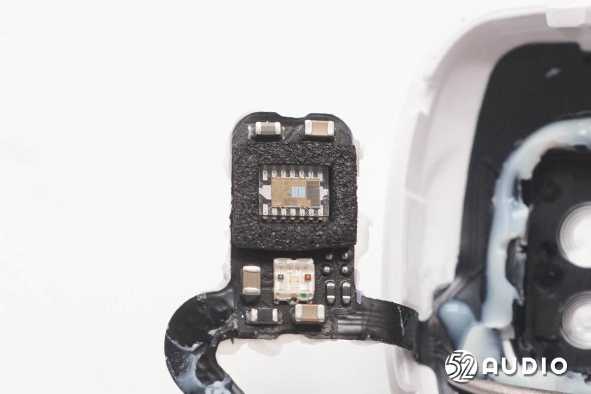 拆开耳机后端腔体,内部设置有电池、主板和健康监测模块。