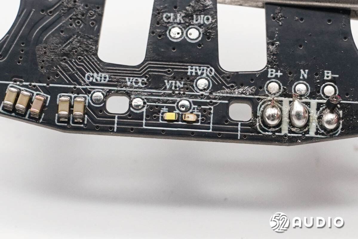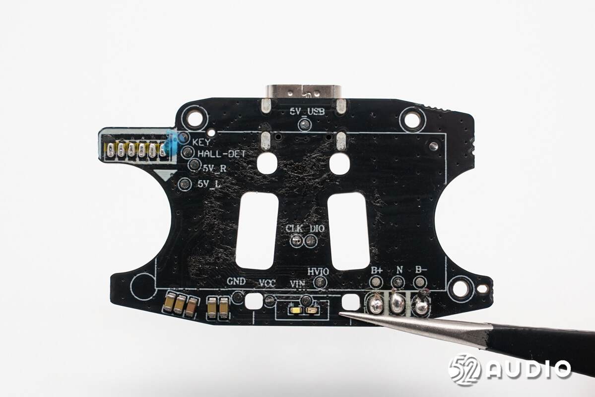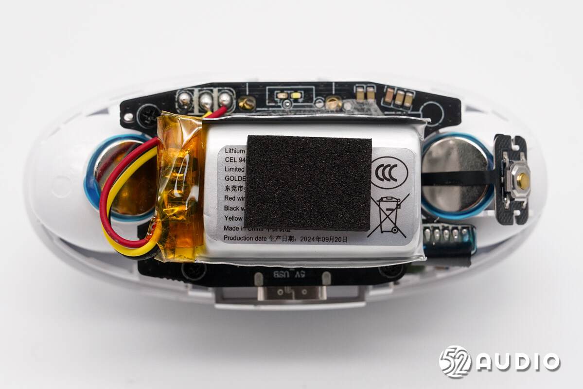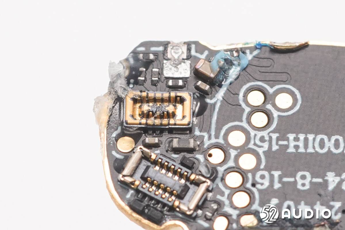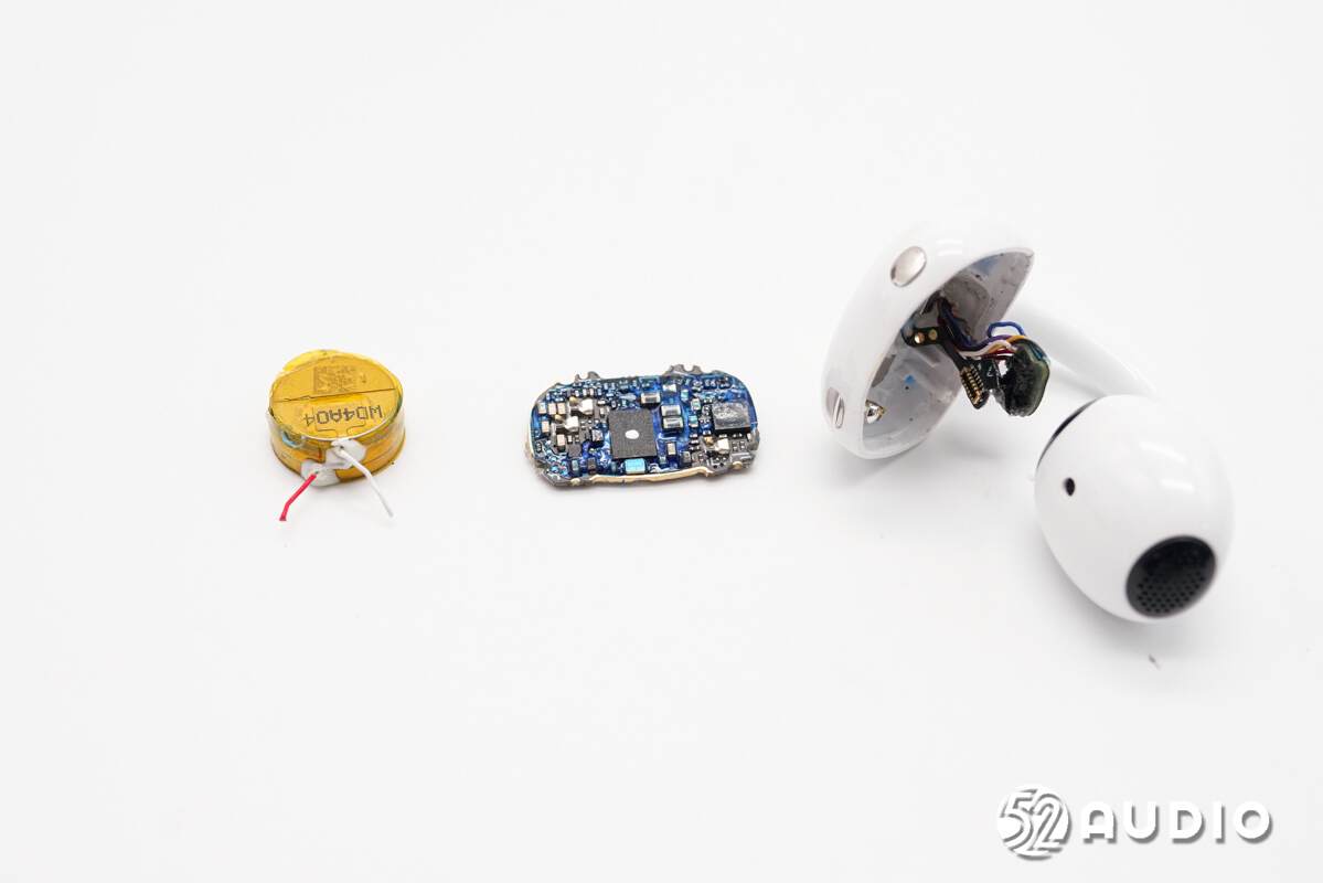 拆开耳机后端腔体,内部设置有电池、主板和健康监测模块。