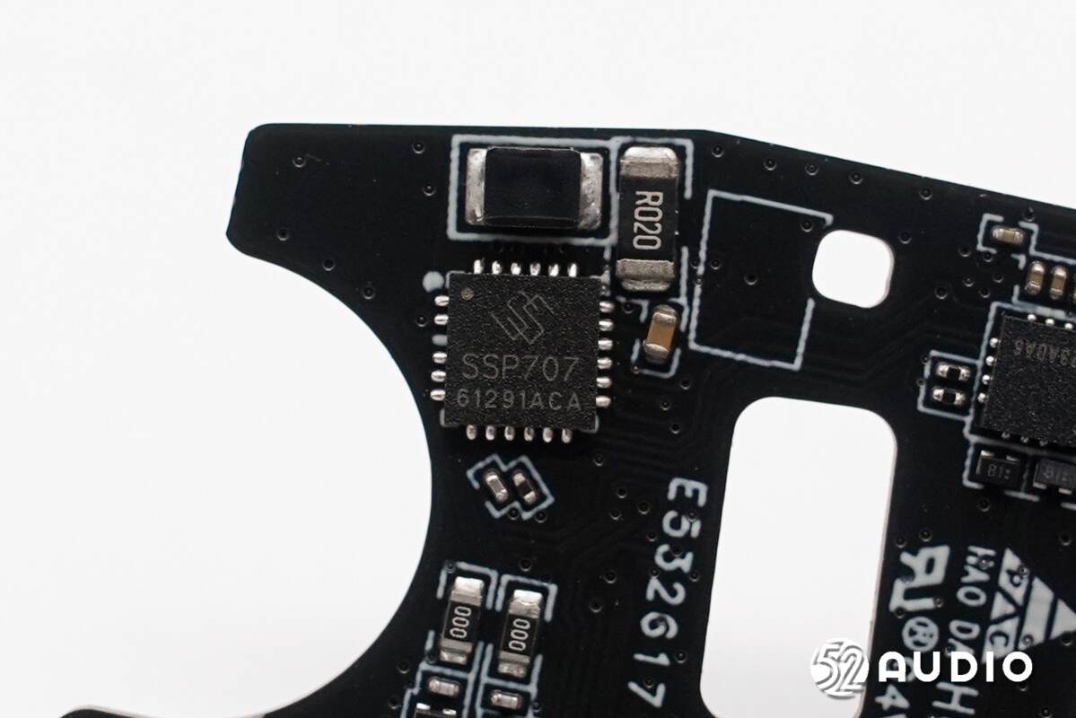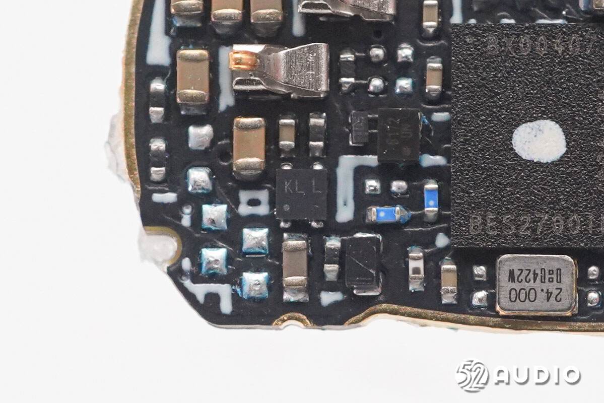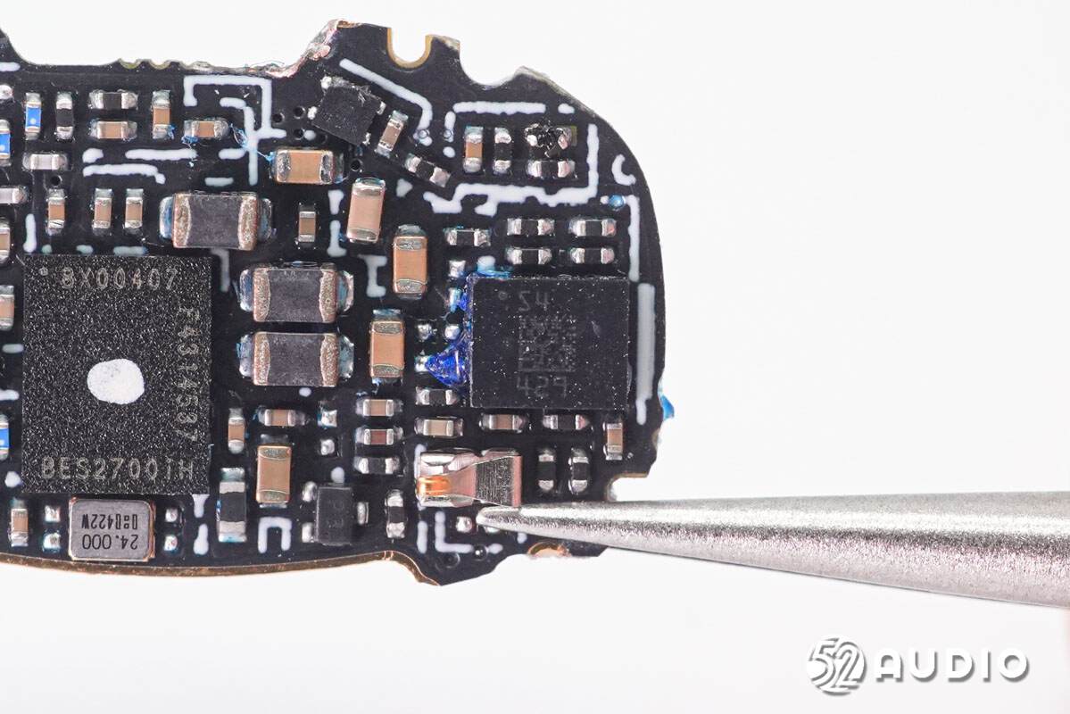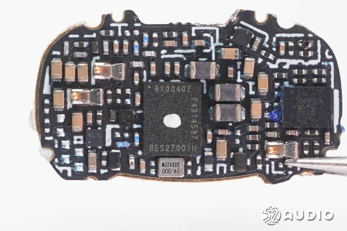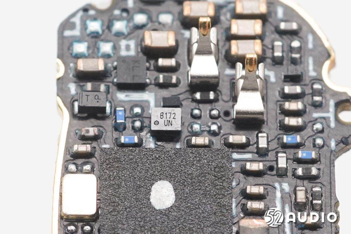 耳机搭载了13mm镀钛振膜动圈单元,提供出色音质;内置三颗MEMS麦克风精准拾音,其中前馈降噪麦克风和通话麦克风来自敏芯微电子;主控芯片为BES恒玄科技BES2700iH蓝牙音频SoC,外围配备Sunlord顺络电子MPHM系列功率电感和SDCL0603Q系列叠层陶瓷电感。