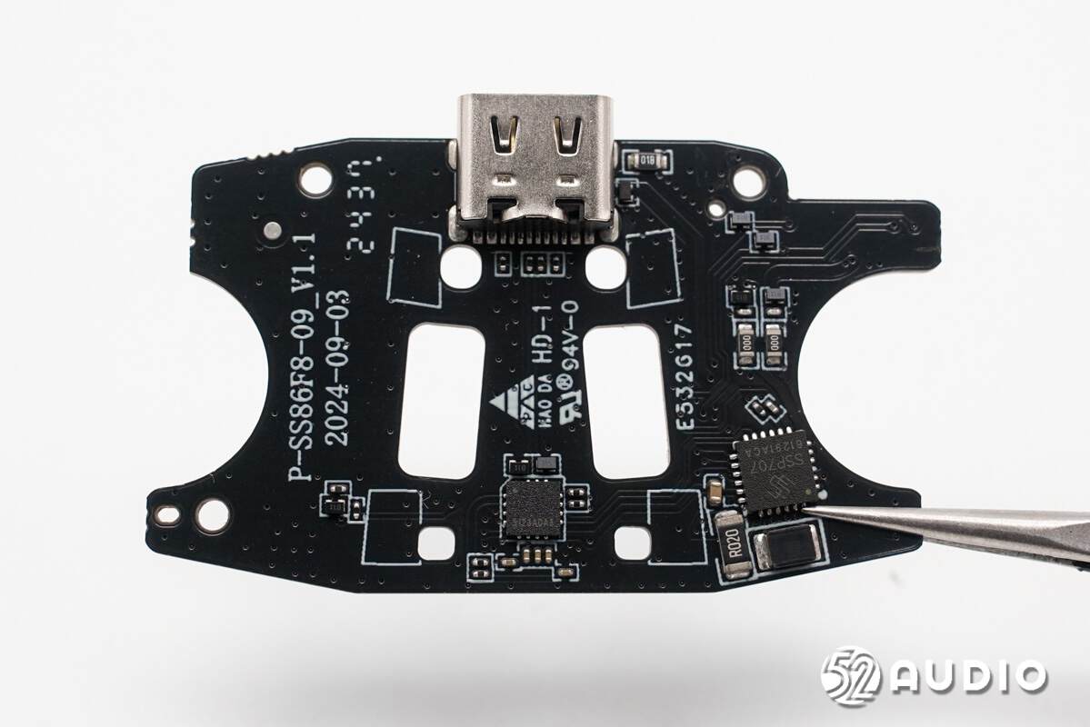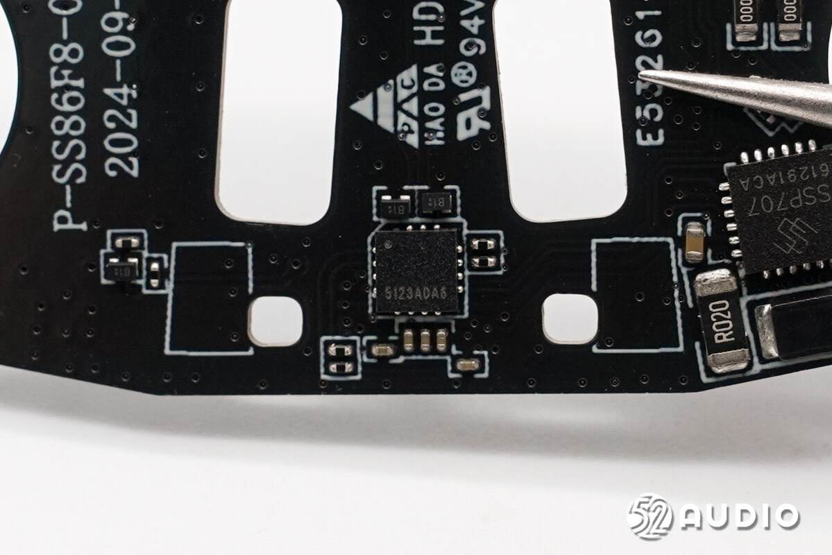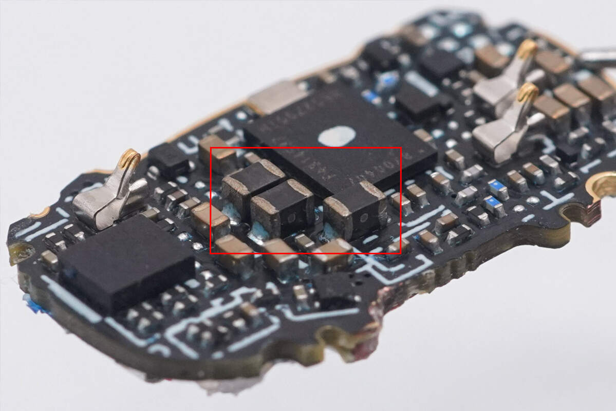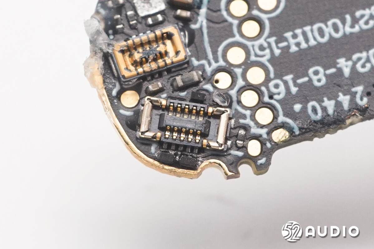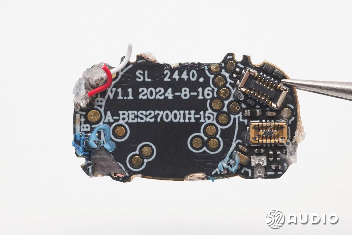 耳机搭载了13mm镀钛振膜动圈单元,提供出色音质;内置三颗MEMS麦克风精准拾音,其中前馈降噪麦克风和通话麦克风来自敏芯微电子;主控芯片为BES恒玄科技BES2700iH蓝牙音频SoC,外围配备Sunlord顺络电子MPHM系列功率电感和SDCL0603Q系列叠层陶瓷电感。