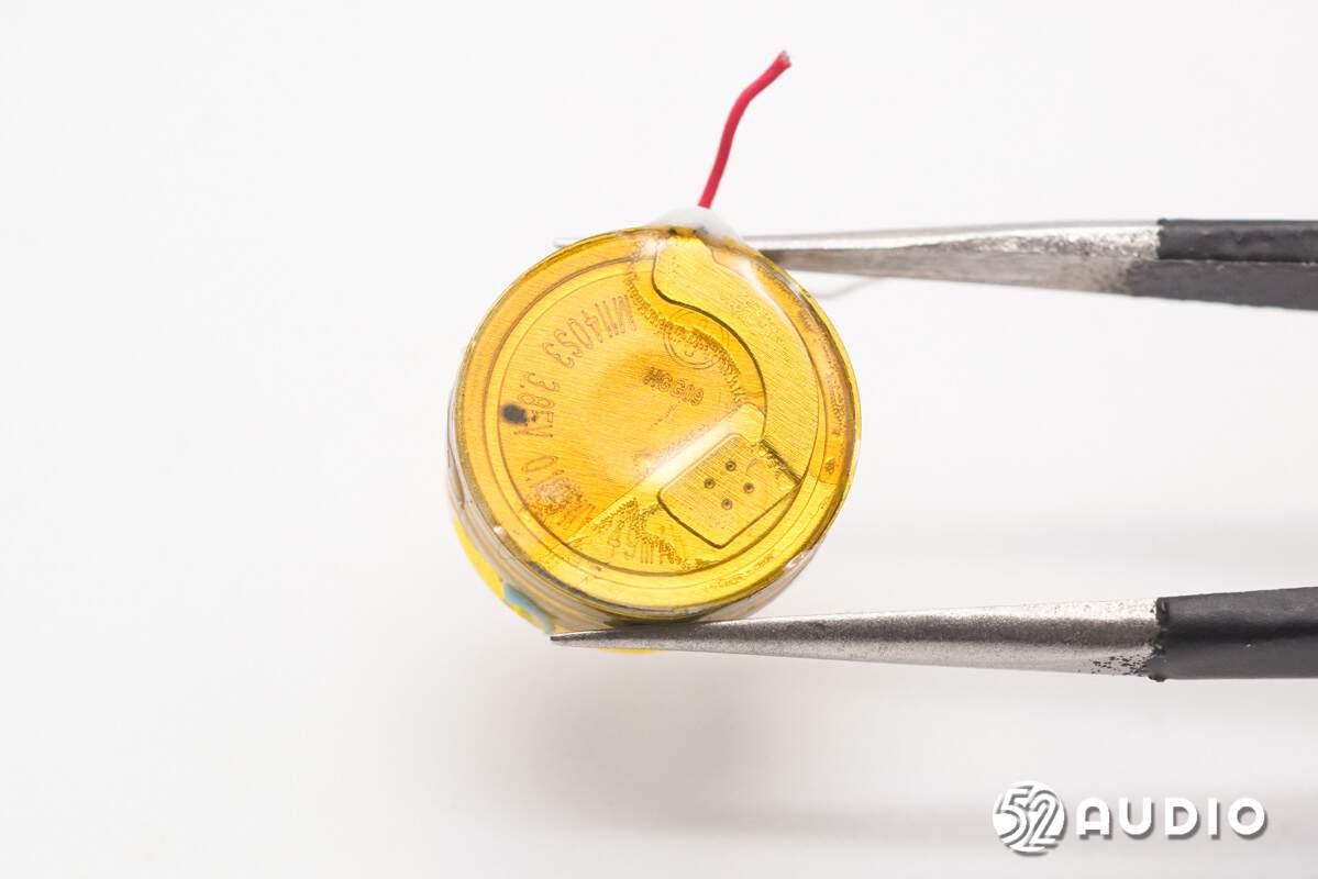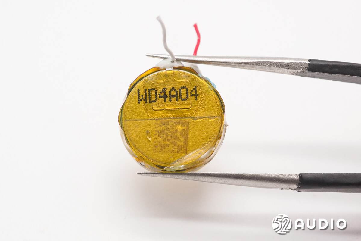 耳机内置钢壳扣式电池,型号:M1140S3,标称电压:3.85V,容量:49mAh 0.189Wh,来自MIC-POWER微电新能源。