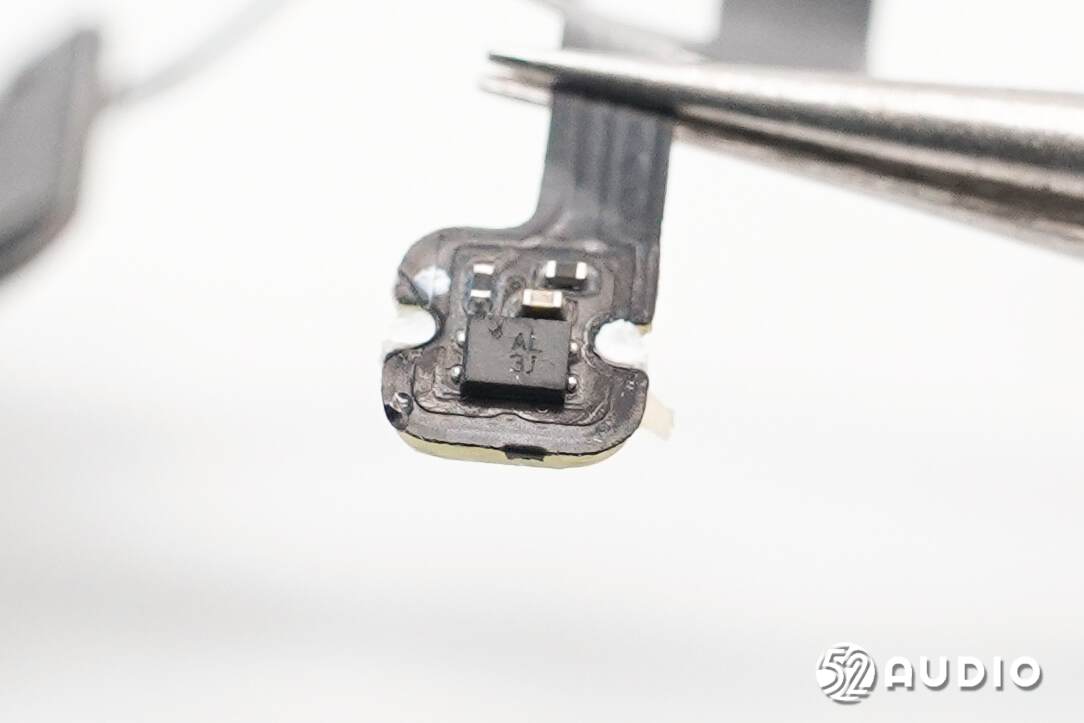 丝印AL 3J的的霍尔元件,用于感知耳机出入仓时的磁场变化,进而通知充电盒MCU和耳机与已连接设备配对或断开连接。