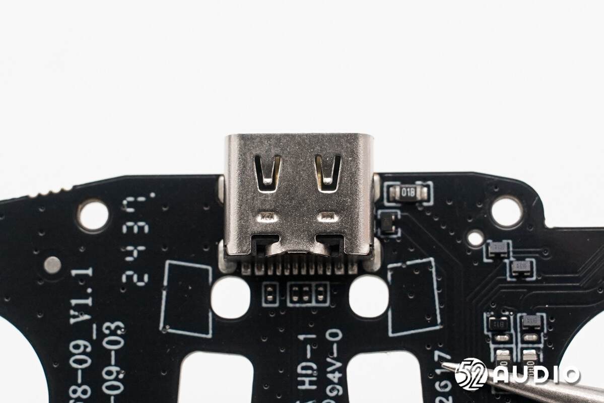 充电盒背面采用银色转轴设计,设置有Type-C充电接口,通过金属环防护。