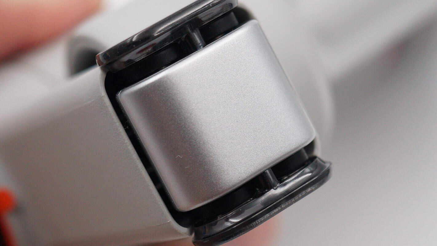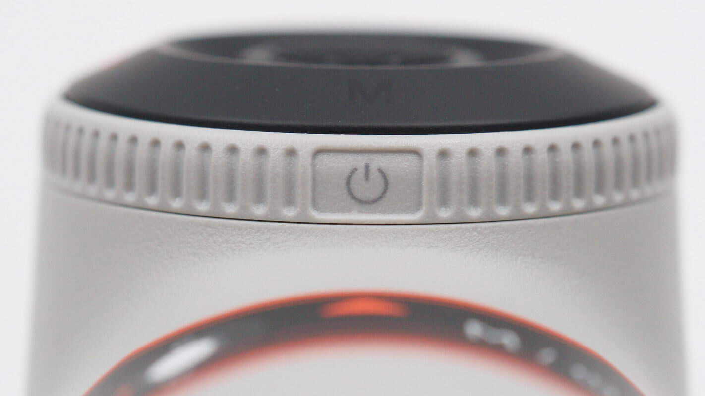 触控面板侧身设有变焦拨轮,并细节设计开关提示标识。