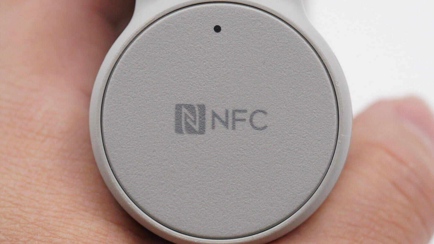 盖板中心印有NFC标识,边缘设有NFC配对指示灯。