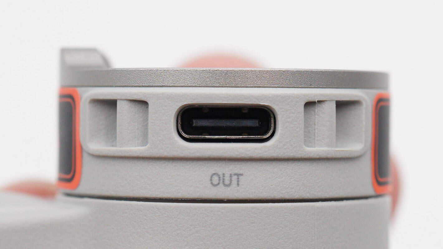 横滚轴电机模块侧面设有一个USB-C对外供电接口,可连接手机后单击电源键实现为手机充电,也可以连接AI追踪模块进行使用。