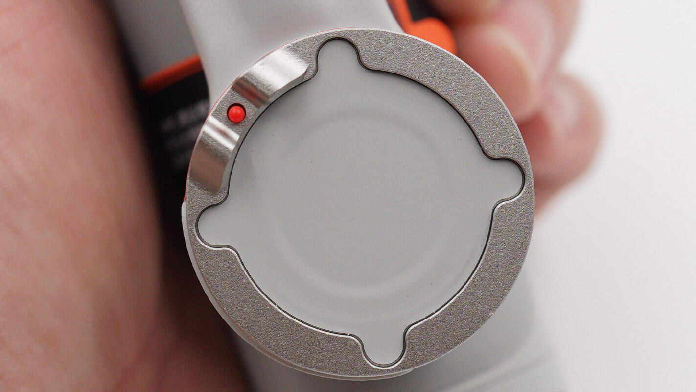 模块带补光灯设计,同时机身端部配置亮度和色温调节按键,其中亮度键上细节设计凸起,方便昏暗环境识别。通过长按任意键可开启补光灯,短按对应按键可实现三档亮度、色温调节。