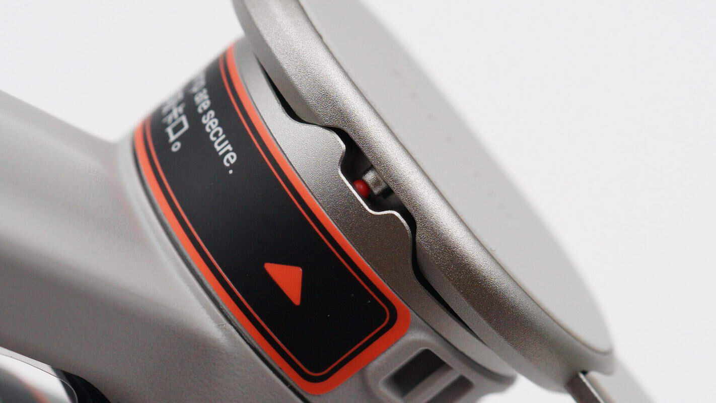 磁吸手机夹背面一侧边缘设计凹槽,方便用户对齐云台上红色凸起进行正确安装。