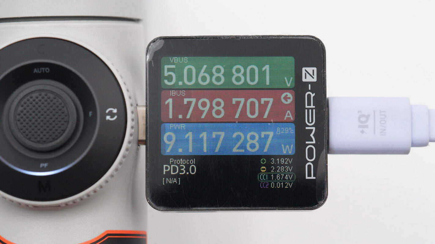给影石Insta360 Flow 2 Pro充电,测得充电功率约为9.12W。