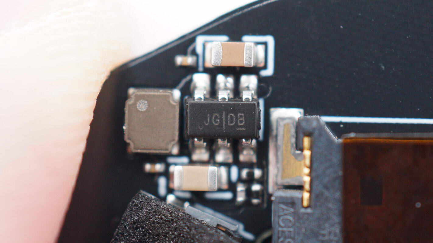 用于供电的降压芯片来自钰泰半导体,丝印JG,实际型号ETA8110,是一颗18V输入电压,2A输出电流的同步降压转换器,芯片内置开关管,采用SOT23-6封装。