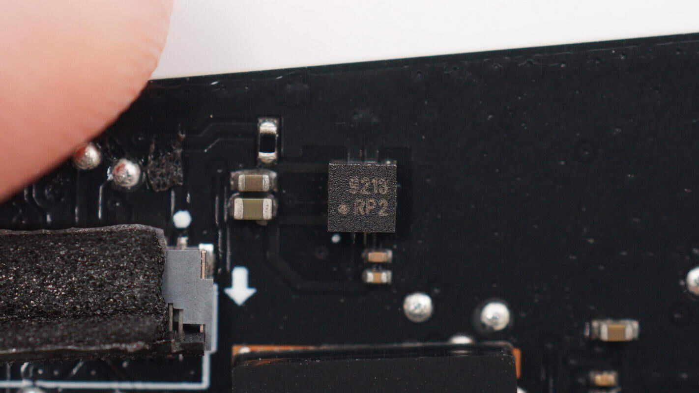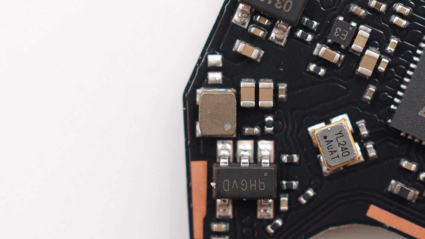 加速度传感器来自QST矽睿,丝印RP2,型号QMA6100P,是一颗三轴加速度计,内部集成14位ADC,具备低噪声,高精度,低功率特性,支持I2C和SPI通信接口,采用LGA-12封装。