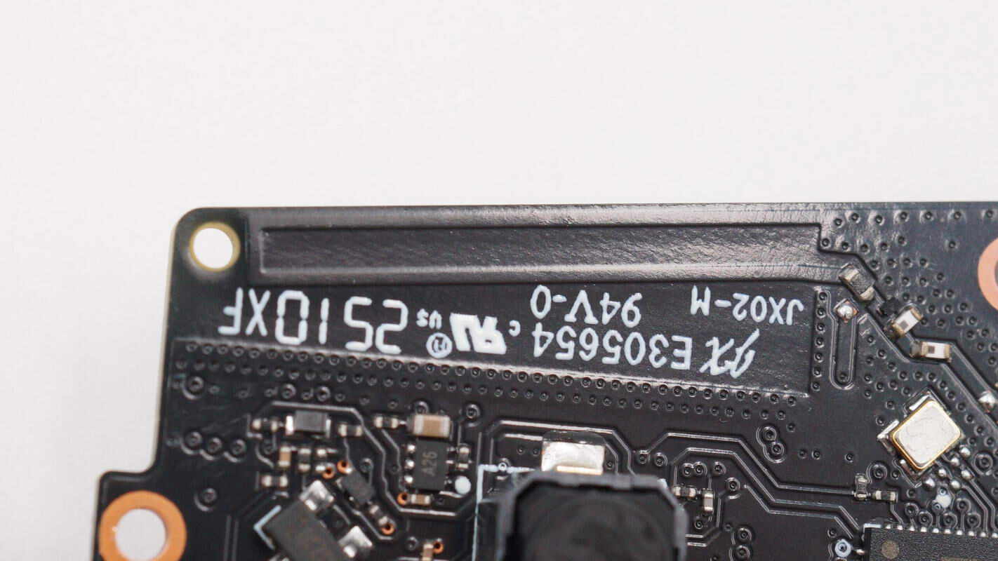 将PCB板拆下,板子正面设有AI SOC芯片、时钟晶振、降压芯片、降压电感等器件。